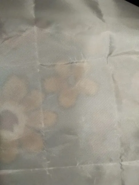 Пришло через месяц Новой почтой. Сложили в шесть раз из за этого сильные заломы, не сильно плотное. Брала у другого продавца черного цвета, намного плотнее и было скручено в трубочку. Вещь хорошая, но из за заломов думаю прослужит не долго.