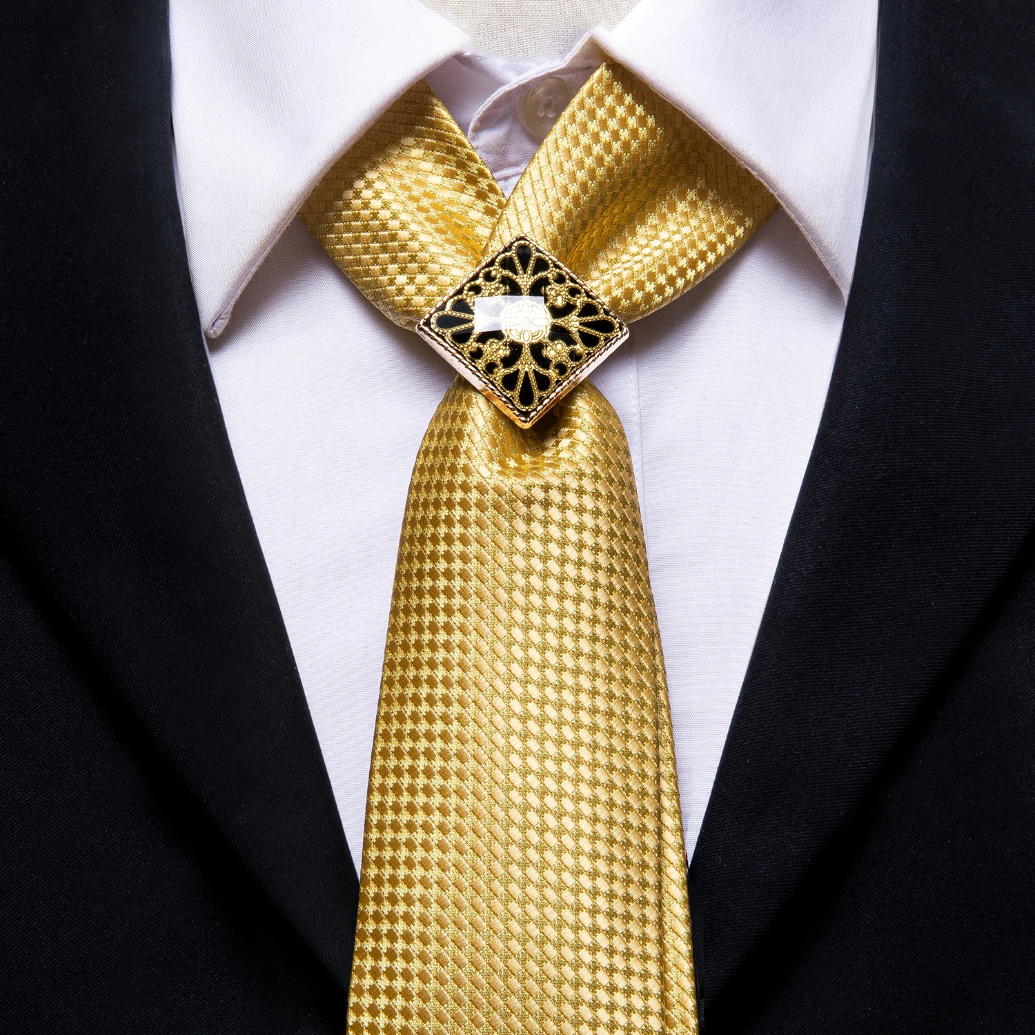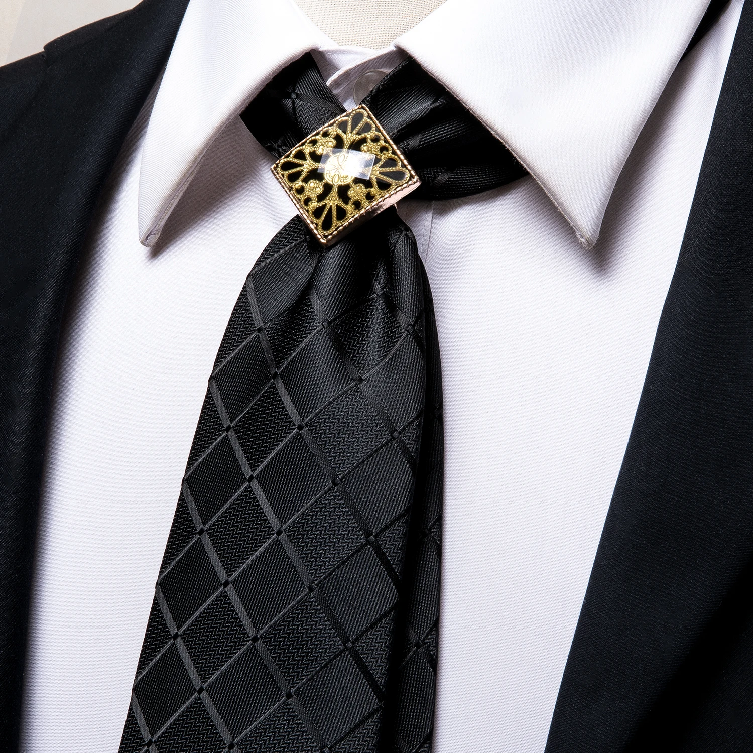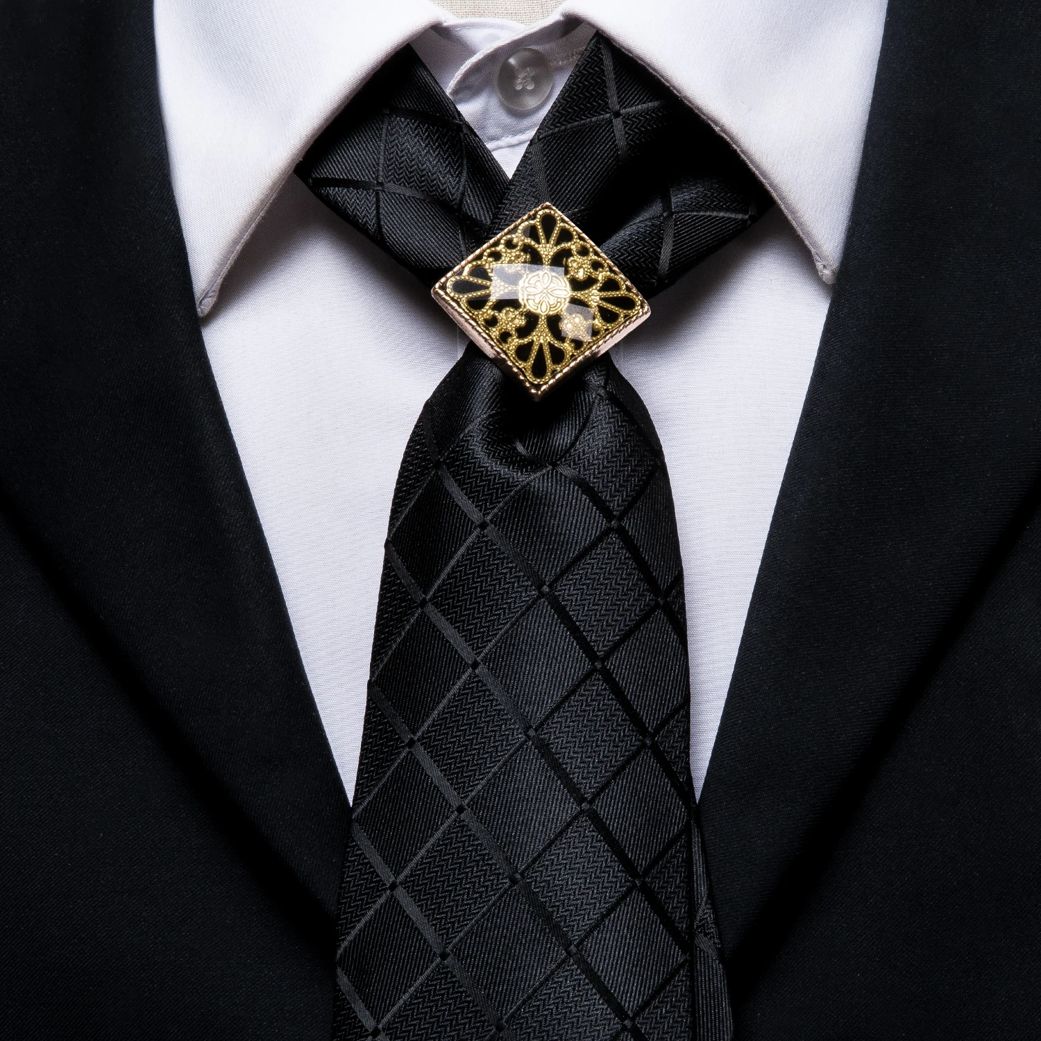 Галстук Hi-Tie мужской, черный, золотой, однотонный Шелковый Свадебный галстук для мужчин, набор запонок с кольцом, модный дизайн, деловечерние, Прямая поставка