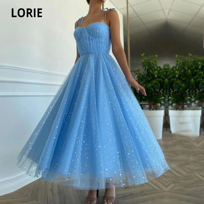 Блестящие платья LORIE для выпускного вечера, синее блестящее платье длиной ниже середины икры со звездами для выпусквечерние вечера, платье знаменитости jurken