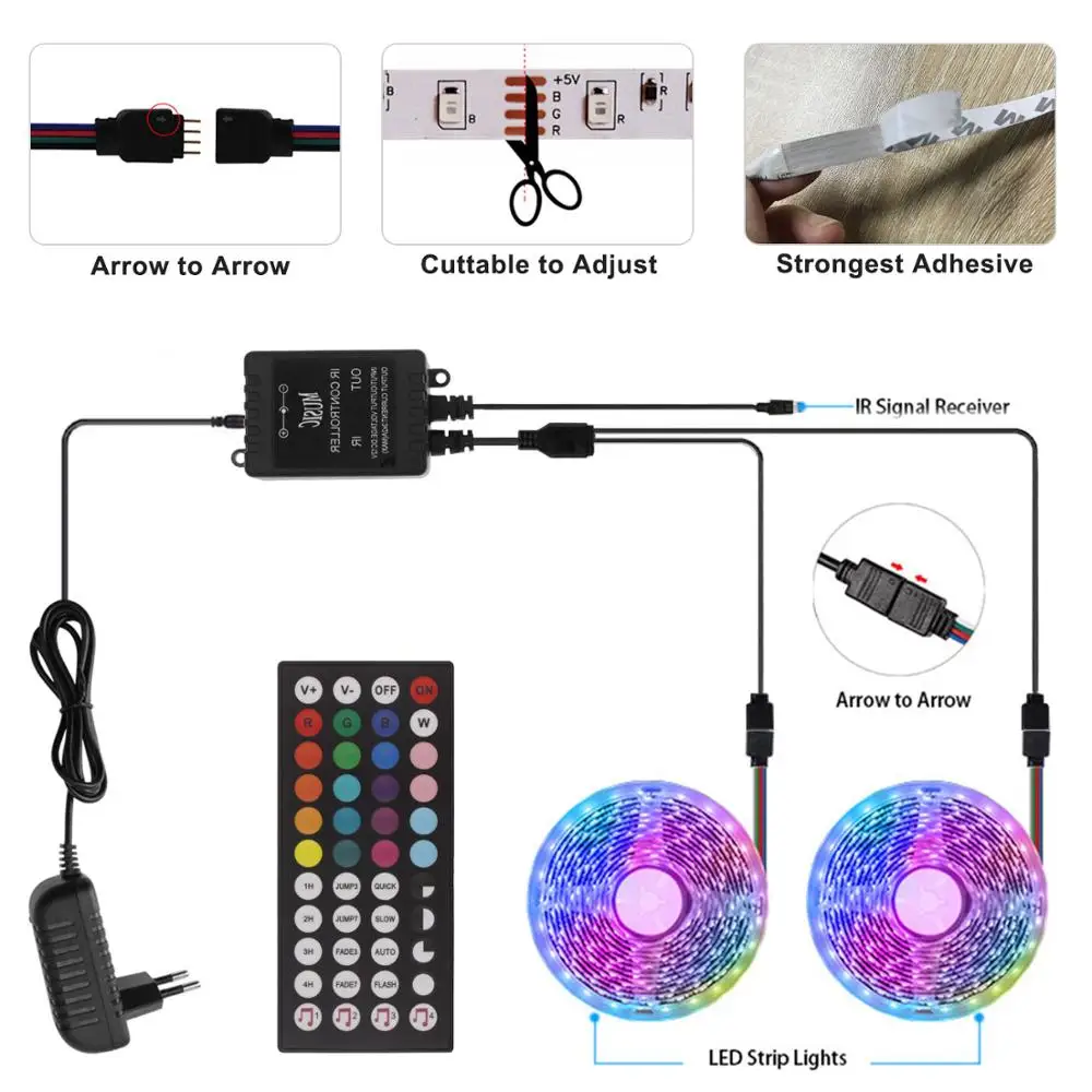 Комплект контроллера с 24 кнопками 5 м 2835:• Светодиодная лента RGB 5 м 2835 + ИК-пульт дистанционного управления с 24 кнопками + источник питания5 м 5050 44 клавиши IR набор:• Водонепроницаемость: 5M RGB Светодиодные ленты 5050 + 44-клавишный пульт ИК-пульт дистанционного управления + Синхронизация музыки контроллер + Питание