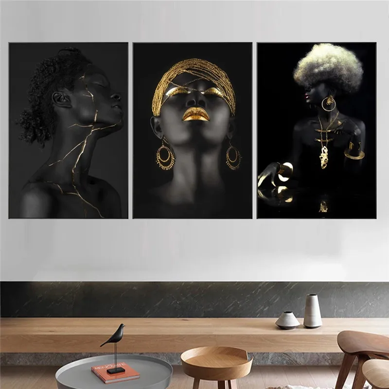 Африканское женское лицо сексуальные Золотые губы холст настенные к...