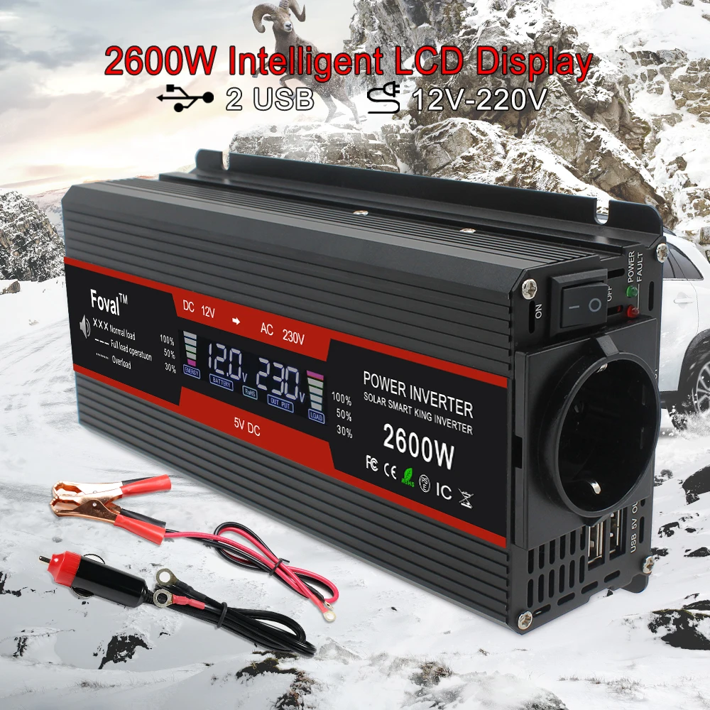 Форма выходного сигнала: модифицированная Синусоидальная волнаПиковая выходная мощность: 2600Номинальная мощность: 1000 ВтВходная мощность: 12 ВВыходное напряжение: 220 В переменного тока/50 Гц ± 3 ГцВилка: штепсельная вилка европейского стандартаВыход: 1 розеткаВыход USB: 5V-4.8AБез тока нагрузки: <0.9AЦифровой Дисплей: ЖК-дисплей входного/выходного напряженияЭффективность преобразования: 90%Вес: 1,3 кг