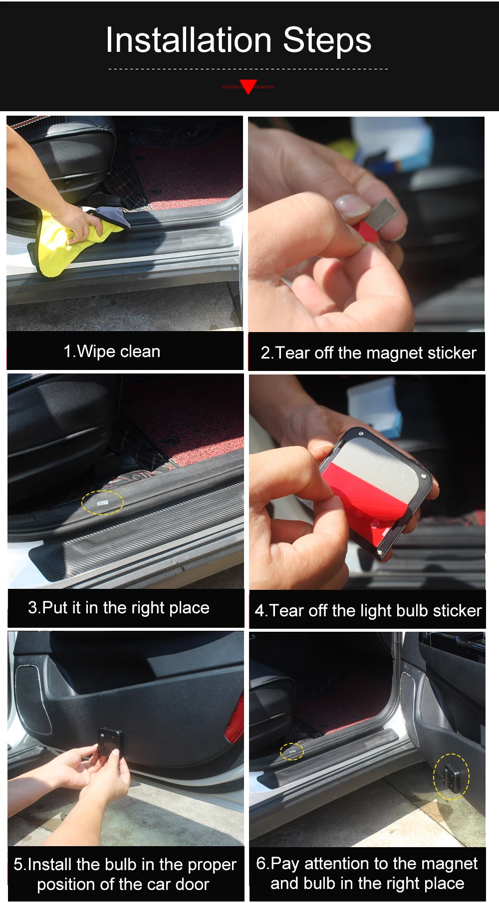 Характеристики: Напряжение: 5 В Тип светодиодный: светодиодный чип Потребляемая мощность: 3 Вт Материал: АБС-пластик Устанавливается просто, хорошо выглядит и полезна Низкое энергопотребление Питание: использование 3 шт. аккумуляторов AAA (аккумуляторы в комплект не входят) Посылка включает в себя: 2 шт. логотипа дверных огней (2 шт. для 2 дверей)