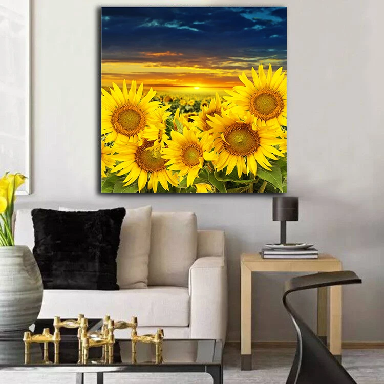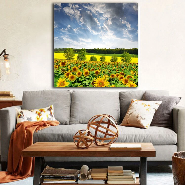 Популярный в Южной Корее холст HD печать плакат Подсолнух поле наст...