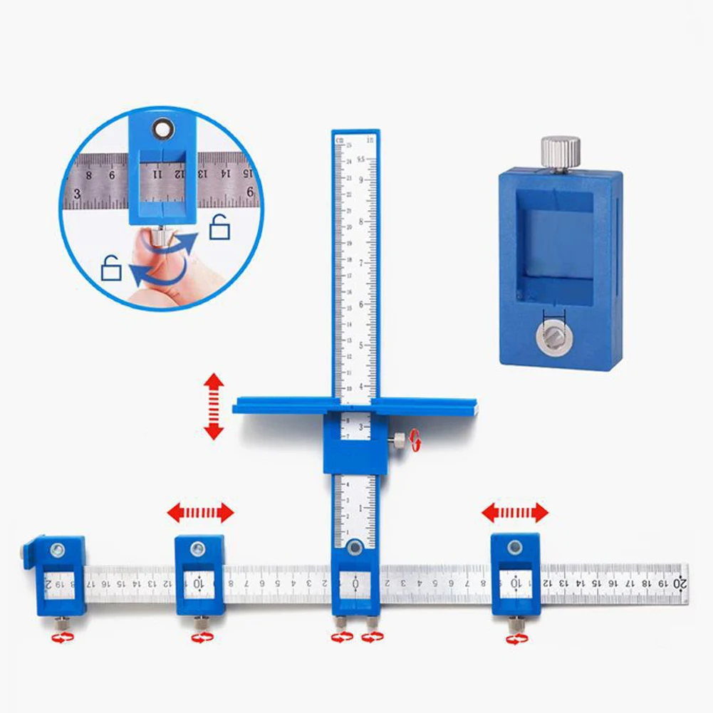 7. Быстрая и легкая Регулировка-многоцелевой шаблон для точного крепления ручек/ручек на ящиках и дверях, l-образный кронштейн и верхний винт делают его горизонтальным, два больших передних винта блокируют его в вертикальном положении.