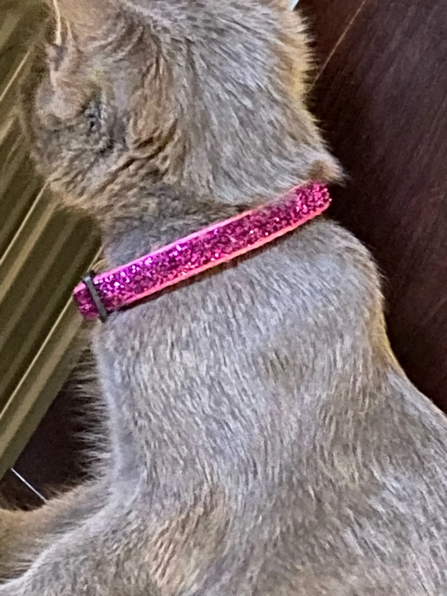 очень красивый гламурный ошейник. Мягкий, колокольчик можно снять. Можно так же регулировать