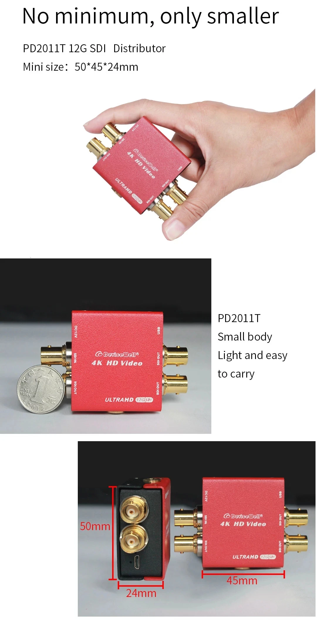 Преобразователь сигнала DeviceWell PD2011T Mini 4K HD Video SDI 12G
