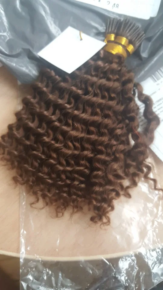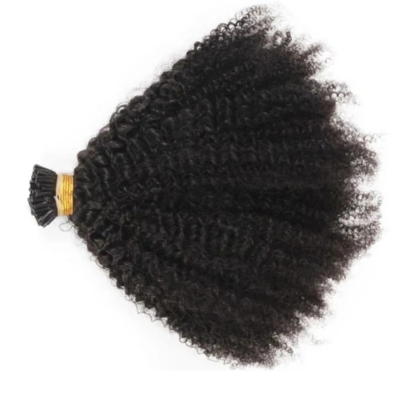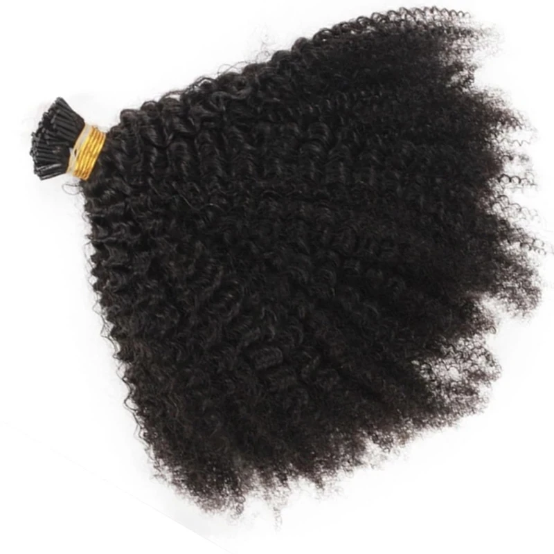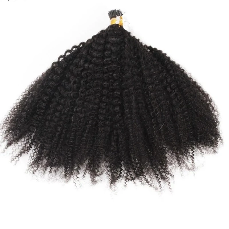Афро кудрявый I Tip Наращивание волос Предварительно Связанные монгольские человеческие волосы микробайс кудрявые микро соединение палочка I Tip волосы 100 прядей