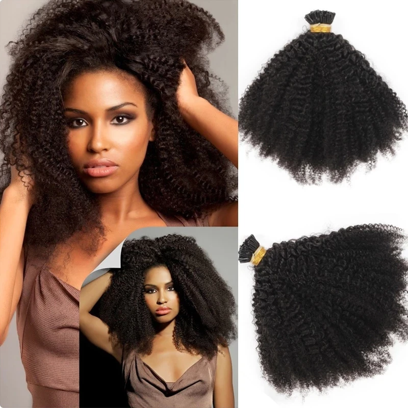 Афро кудрявые вьющиеся I-образные волосы для наращивания, предварительно скрепленные монгольские человеческие волосы, микробусины, вьющиеся микроволосы, I-образные волосы, 100 прядей