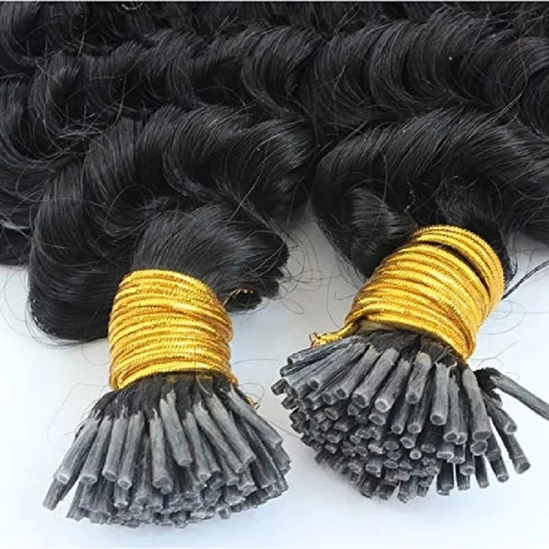 Свободные глубокие вьющиеся I-образные волосы для наращивания, браз...