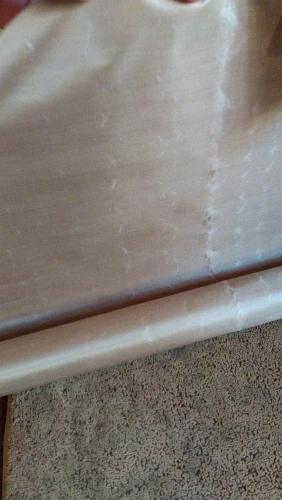 очень тонкий, из ткани, непонятно,как поведёт себя в духовке, ведь заявлен как для выпечки, не ожидала такого странного материала для коврика для ВЫПЕЧКИ!