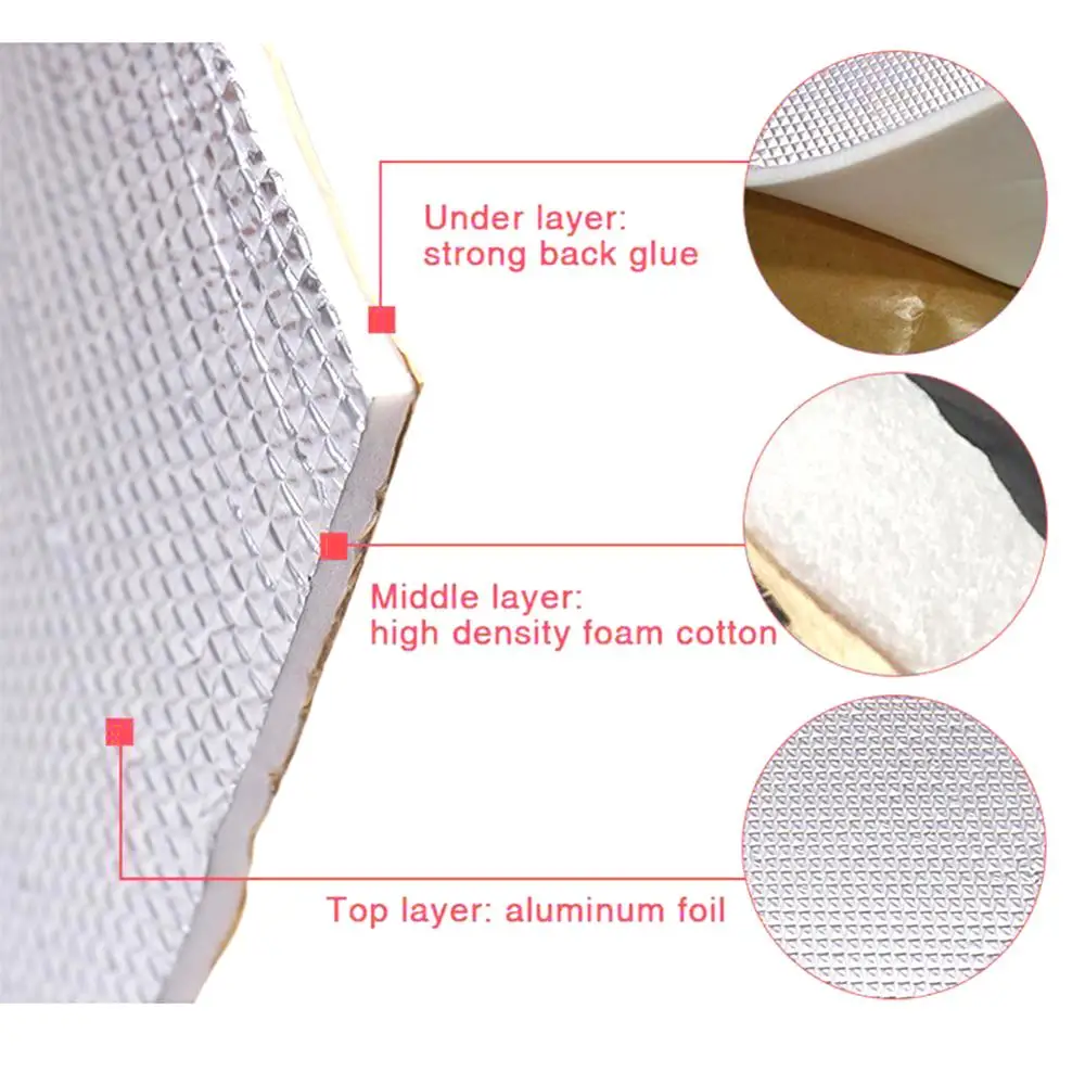 * 1.100% Новый автомобильный звукоизолятор с тепловым экраном, ПЭ с алюминиевым материалом, толщина: 6 мм, высококачественный трехслойный, двойной плотный легкий пенный ламинат