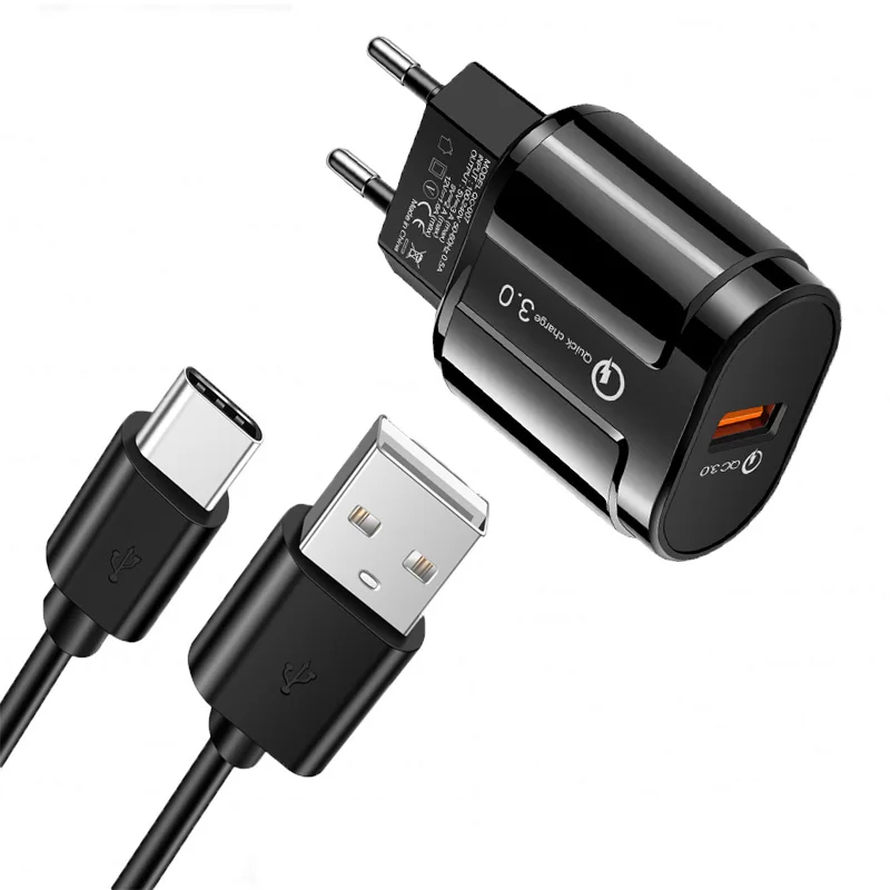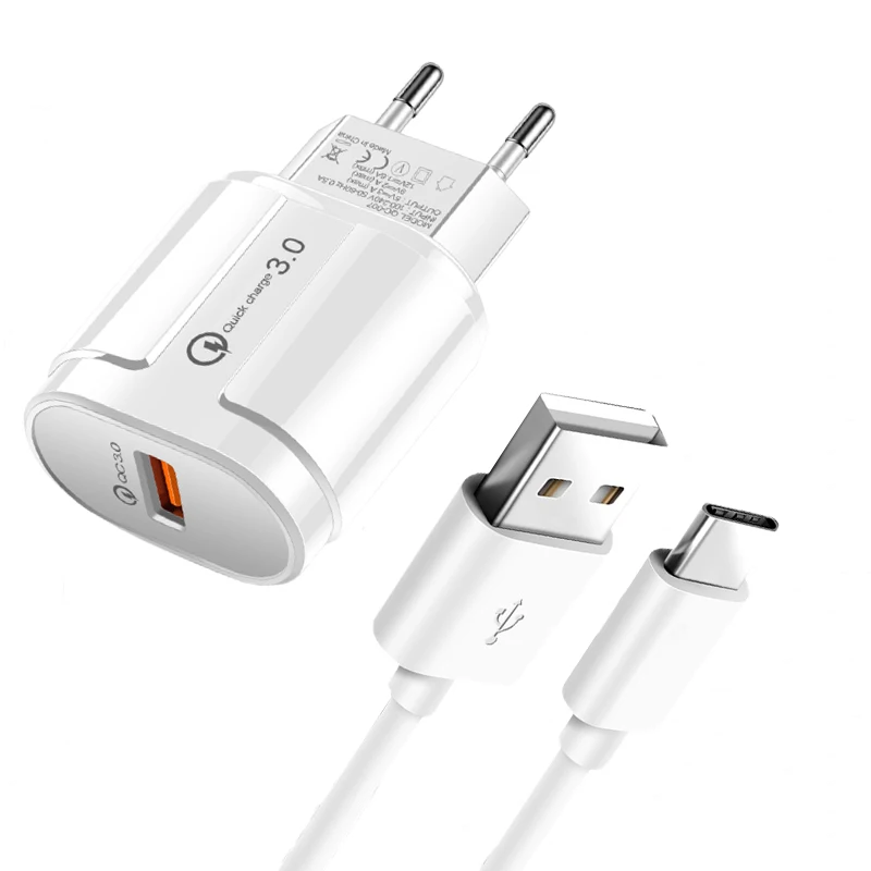 Кабель USB C, зарядное устройство для быстрой зарядки QC 3,0, европ...