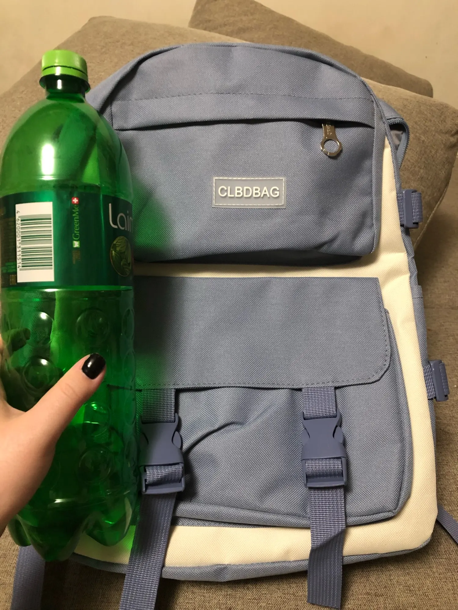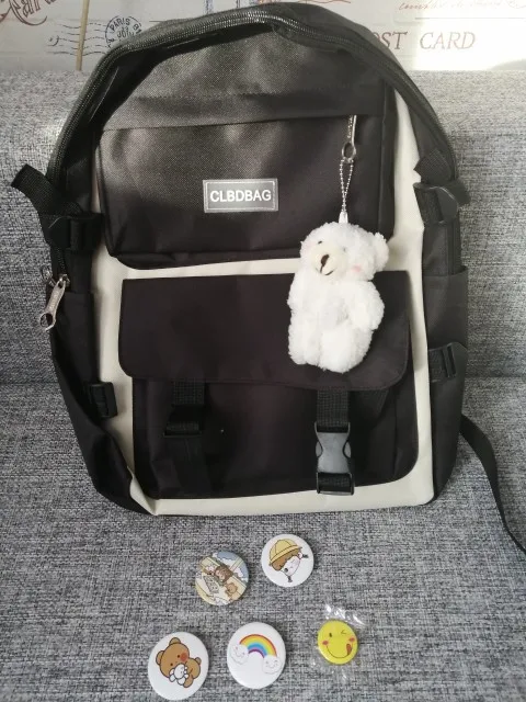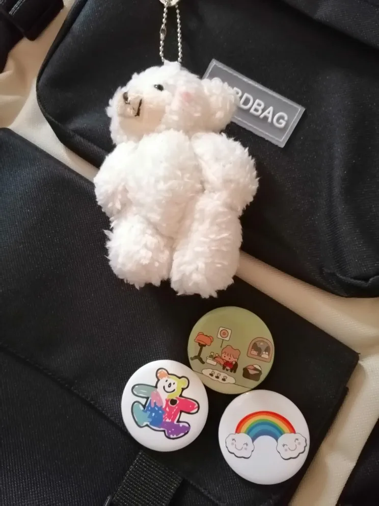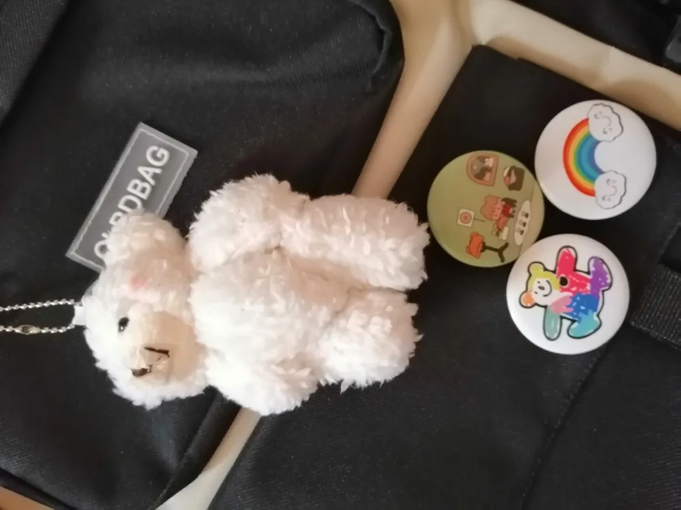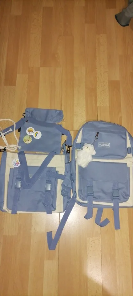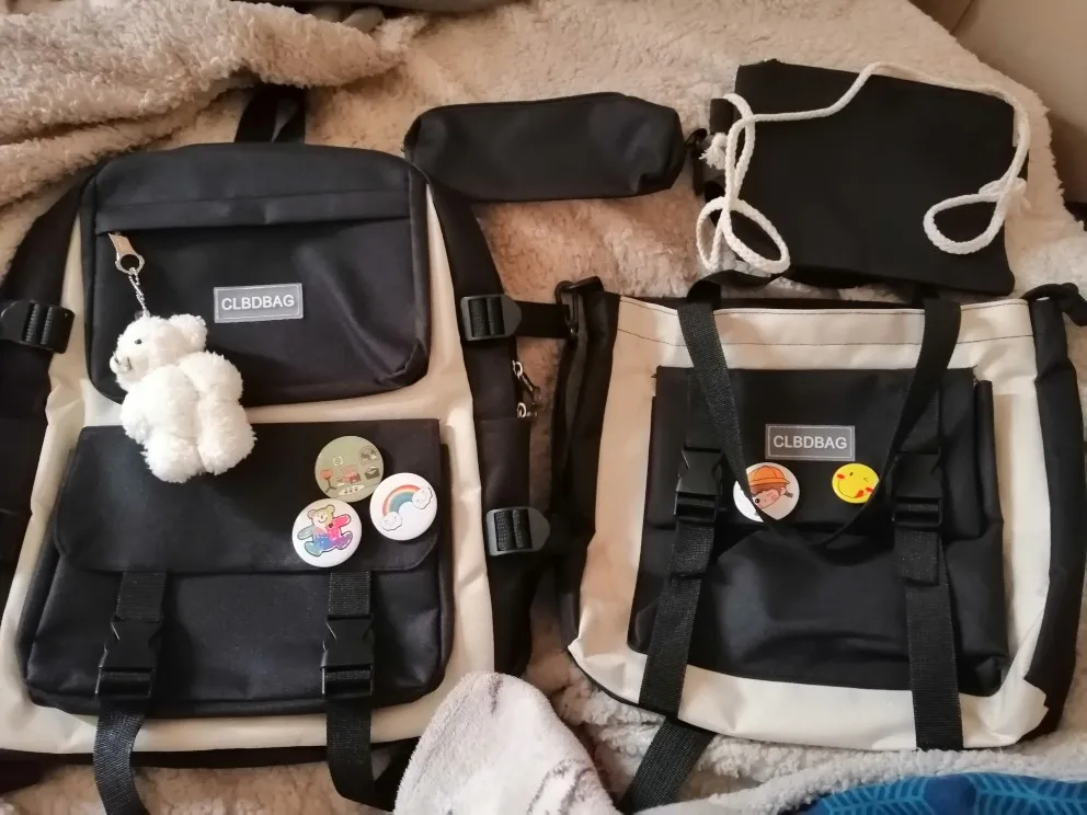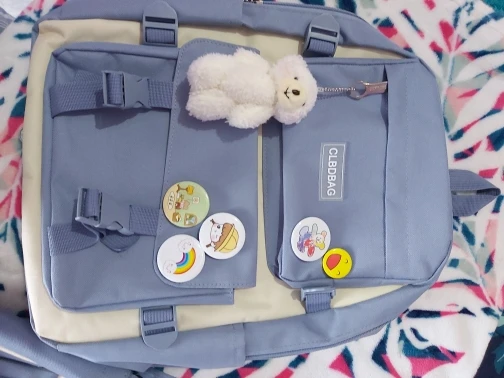 Один из самый рисковых и самых лучших заказов на али. Рюкзак и сумочки отличные, не воняют, именно такого цвета как на картинке, без неровных строчек и ниточек. Бутылка на фото для сравнения размера — все ОЧЕНЬ вместительное. И какой потешный мишка-брелок! Он кривой, но просто очаровательный. Товар 11/10. К заказу рекомендую.