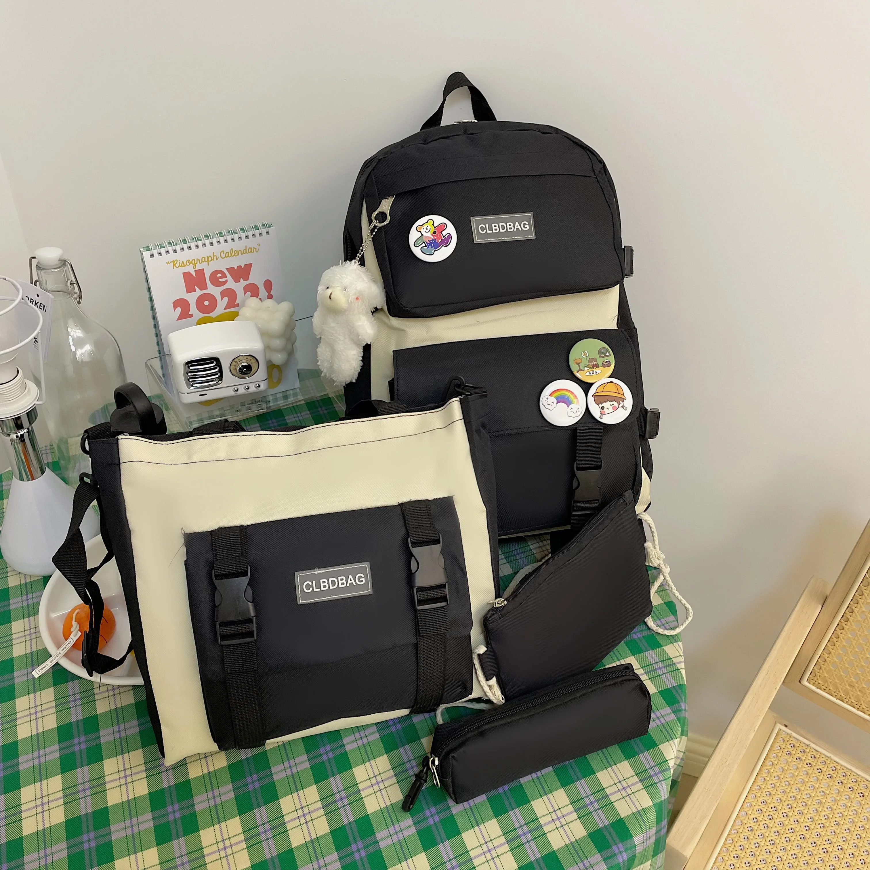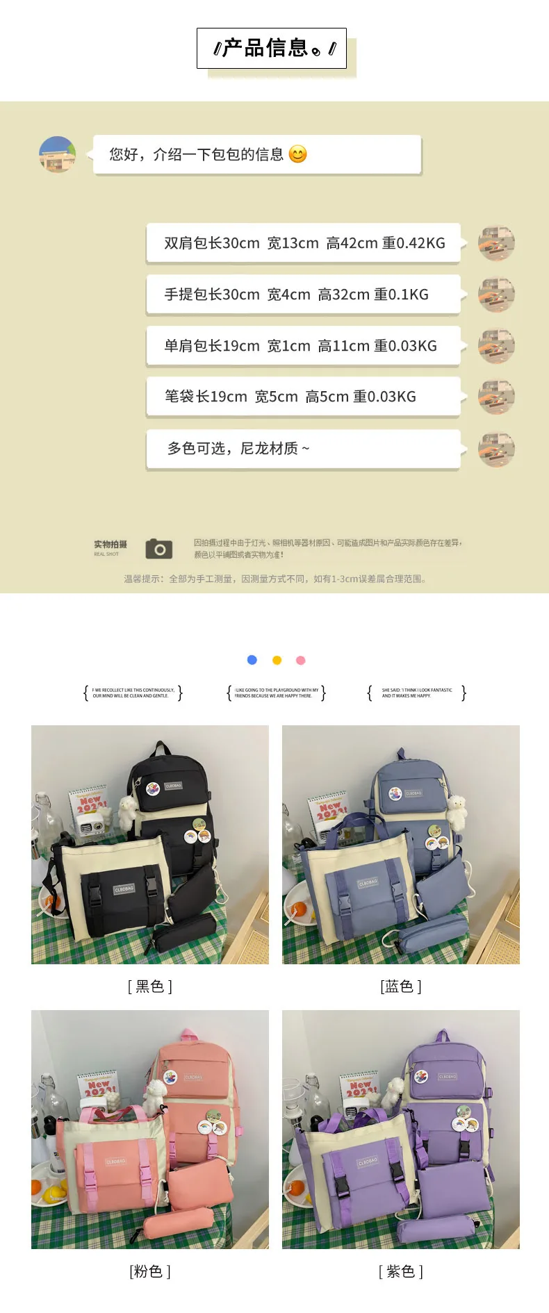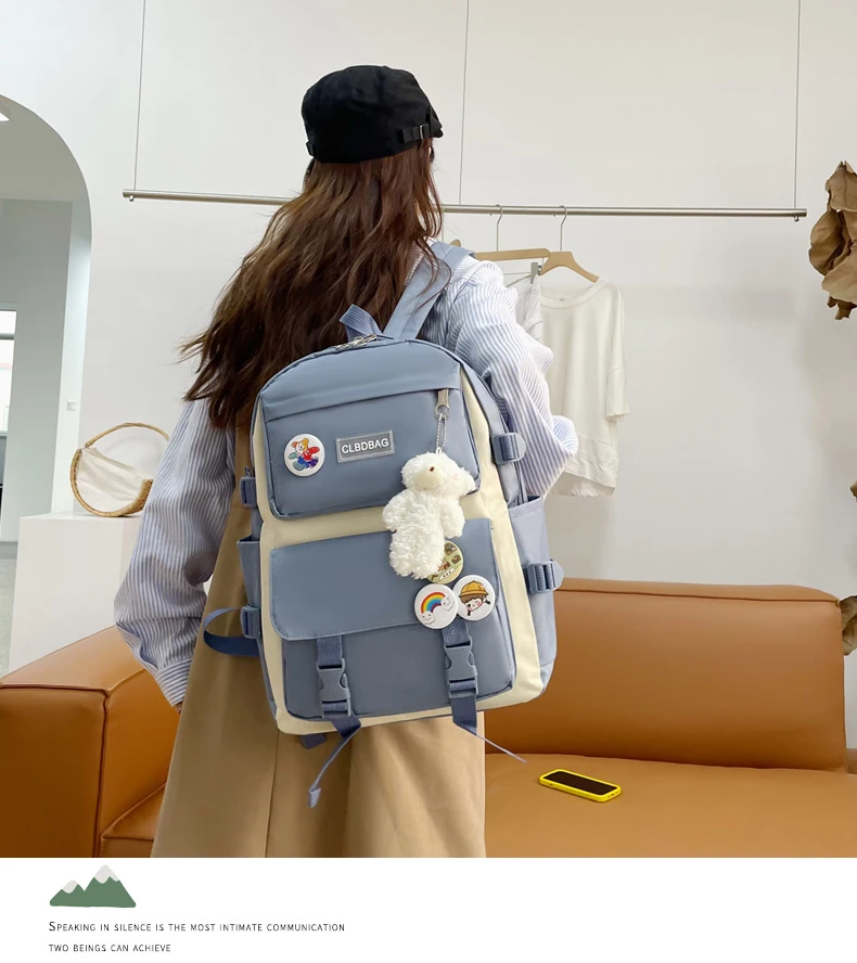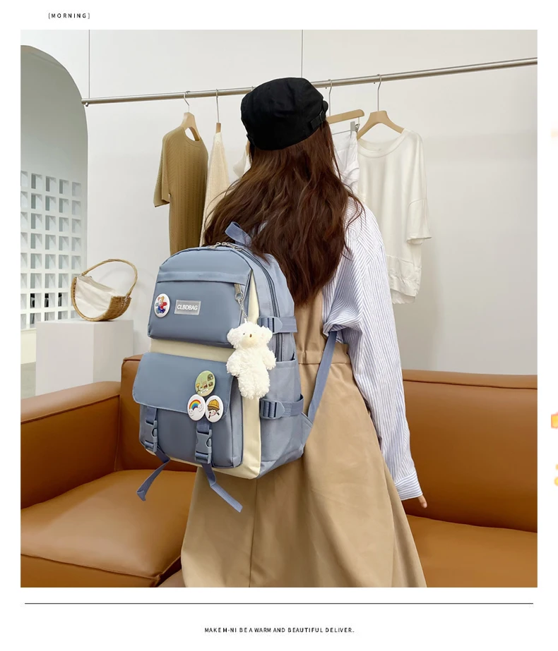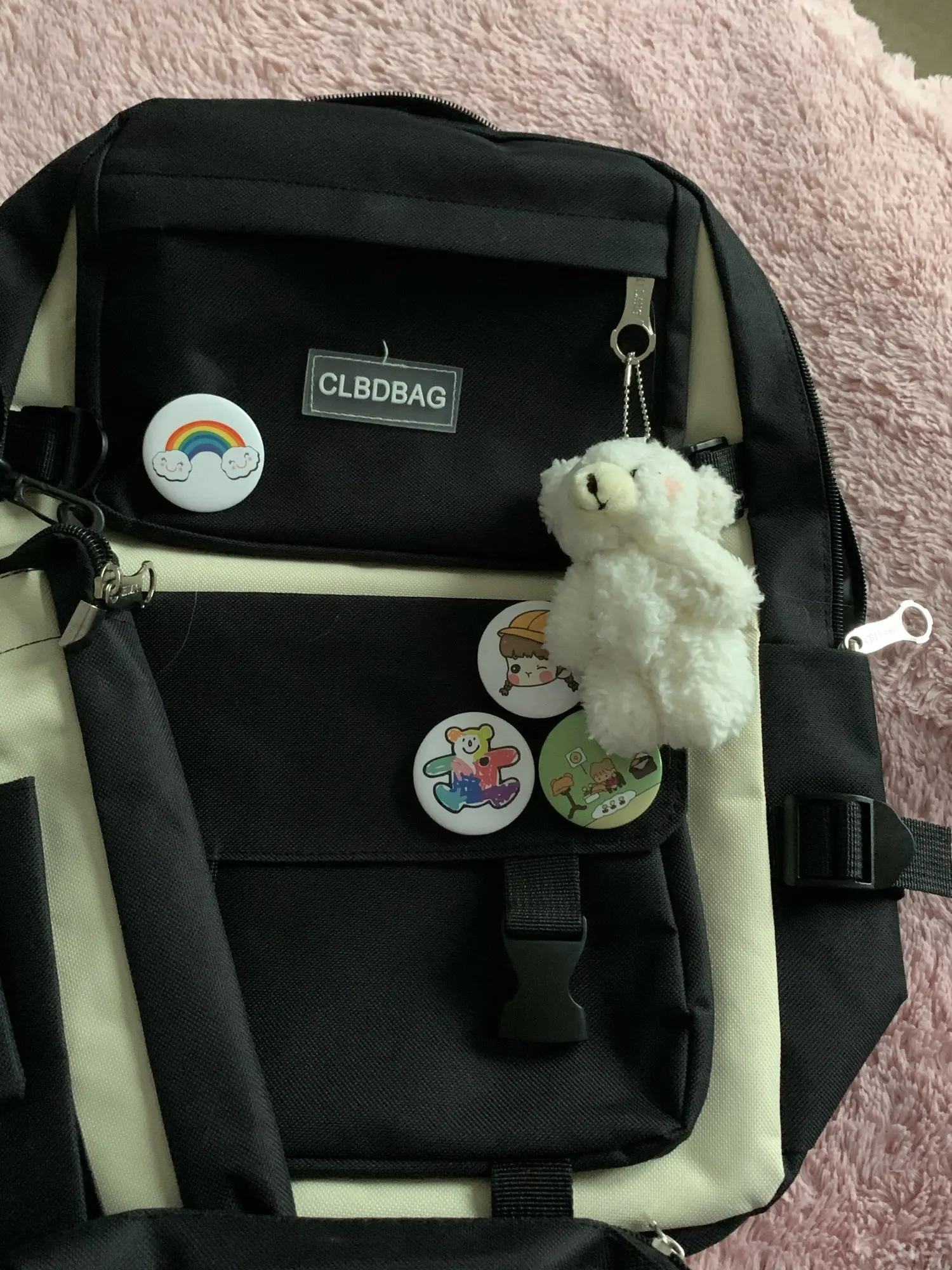 Один из самый рисковых и самых лучших заказов на али. Рюкзак и сумочки отличные, не воняют, именно такого цвета как на картинке, без неровных строчек и ниточек. Бутылка на фото для сравнения размера — все ОЧЕНЬ вместительное. И какой потешный мишка-брелок! Он кривой, но просто очаровательный. Товар 11/10. К заказу рекомендую.