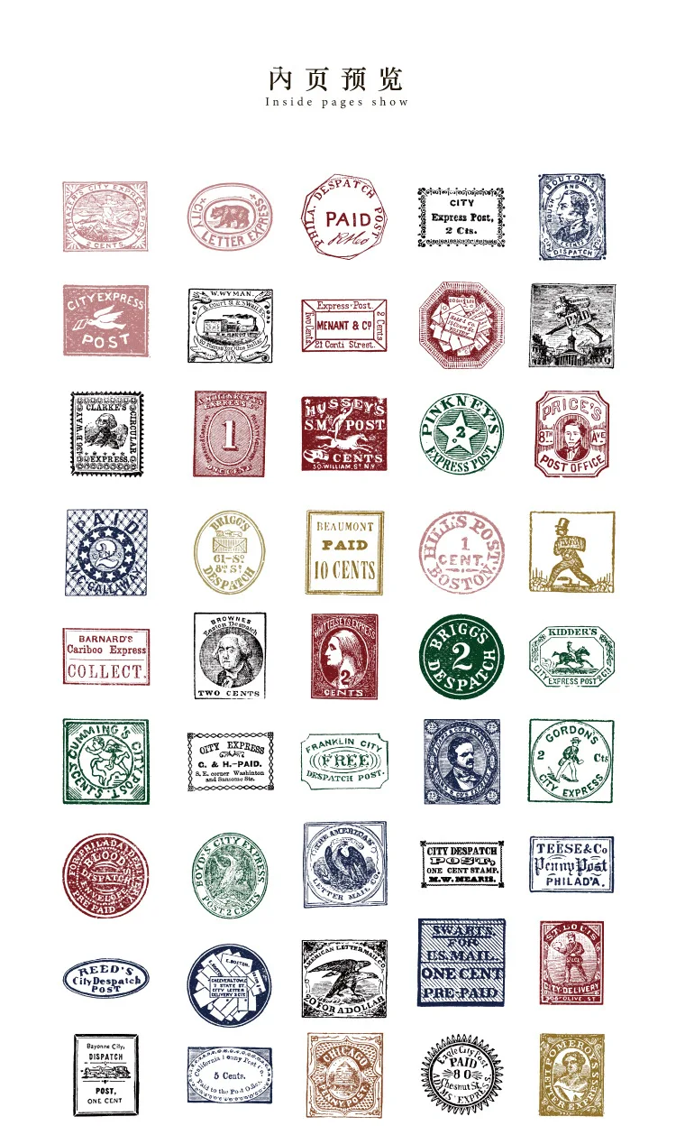 45 шт.упак. винтажные почтовые штампы, декоративные наклейки для скрапбукинга, конвертов, журнала, дневника, планировщика