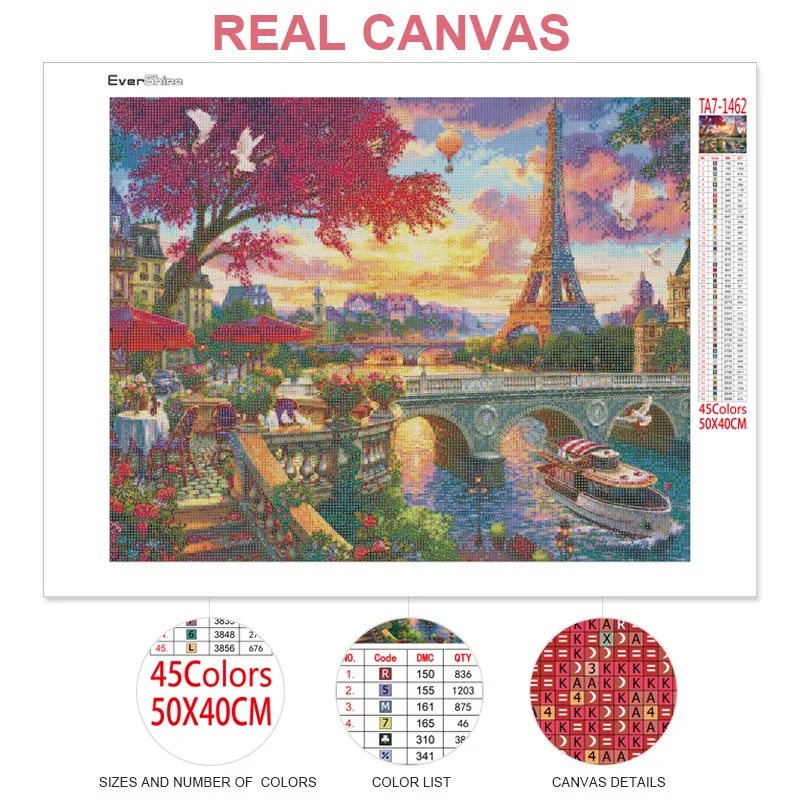 Алмазная 5D картина Evershine, живописная квадратная городская мозаика с мотивом Парижа, картина крестиком, настенное украшение для творчества