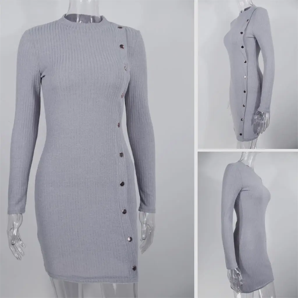 Осеннее женское платье пикантные узкие Мини Вечерние женская одежда модная зимняя трикотажная резинка с высоким, плотно облегающим шею воротником с длинными рукавами, однобортная, с круглой горловиной, платье