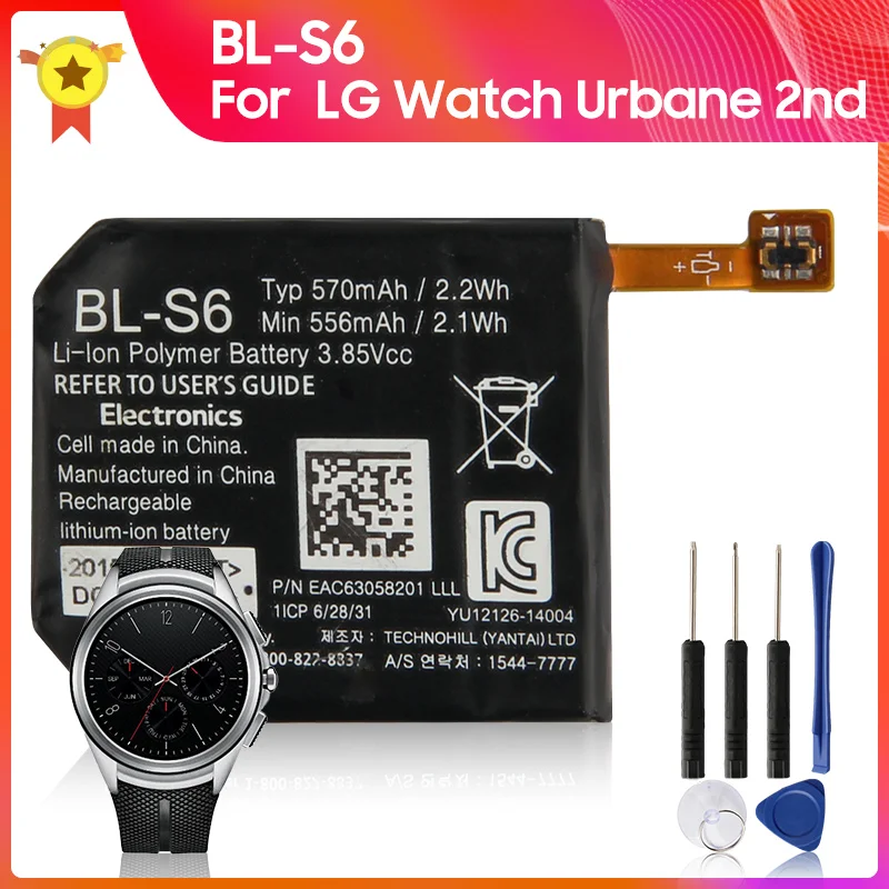 Оригинальная запасная батарея для LG Watch Urbane 2nd Edition LTE W200 W200A, умные часы с подлинной батареей 3,85 В + инструменты, 570 мАч