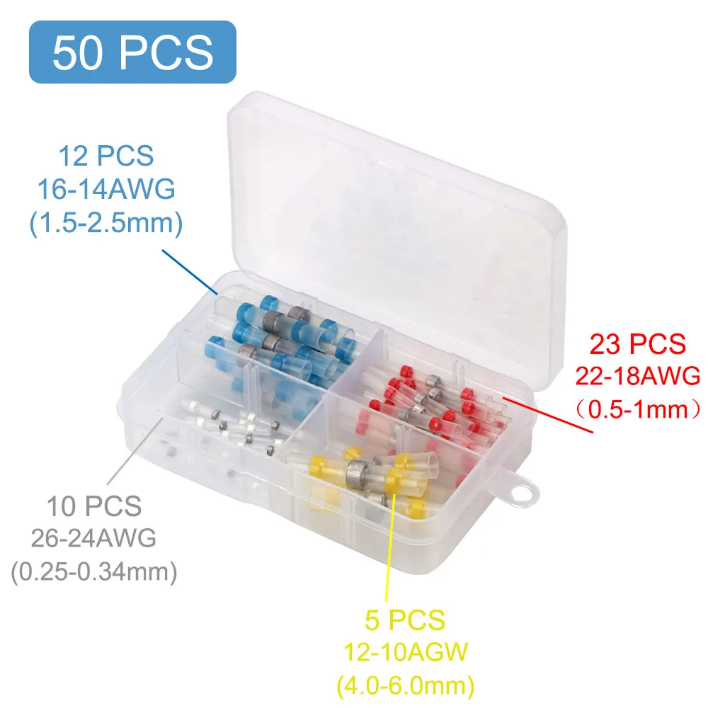 50100 шт. Водонепроницаемый, коннекторов для электрических проводов терминалов терм усадочная стыковые соединители припоя уплотнительная Втулка соединения клеммы соединители проводов