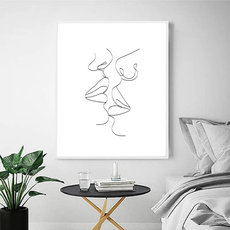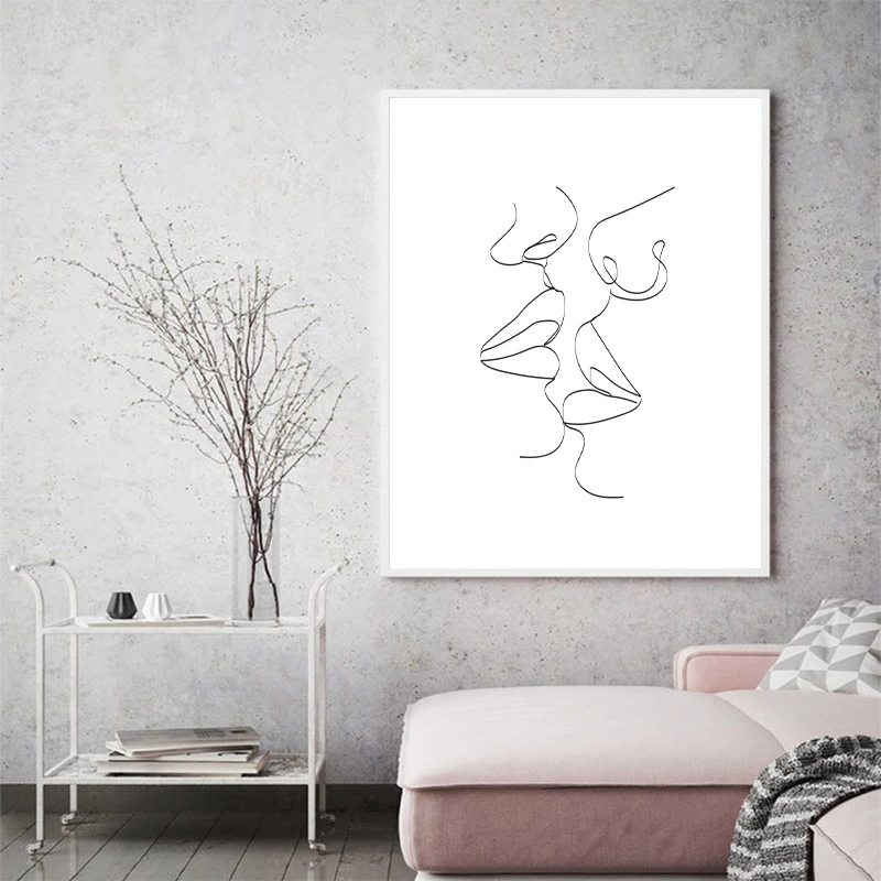 Подарок-гордость, лесбийская женщина, поцелуй линии, абстрактные принты, черный, белый минималистичный плакат, настенная Картина на холсте, декор для спальни