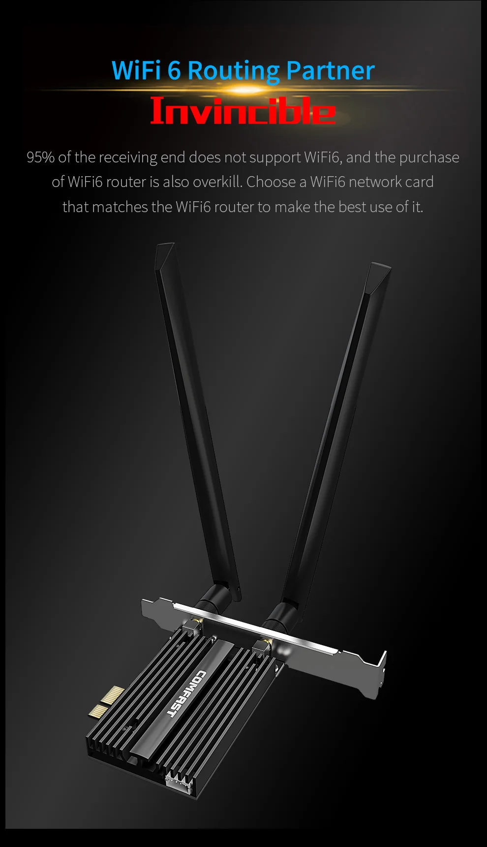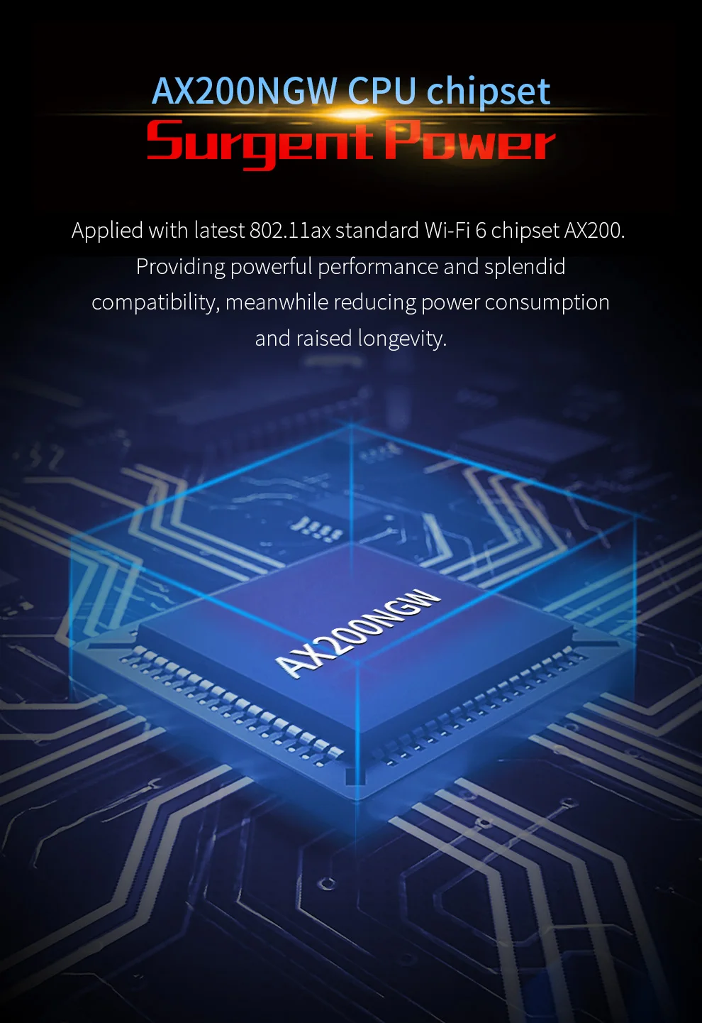 Feature 2Applied with latest intel 802.11 ax standard wi-fi 6 Chipset AX200