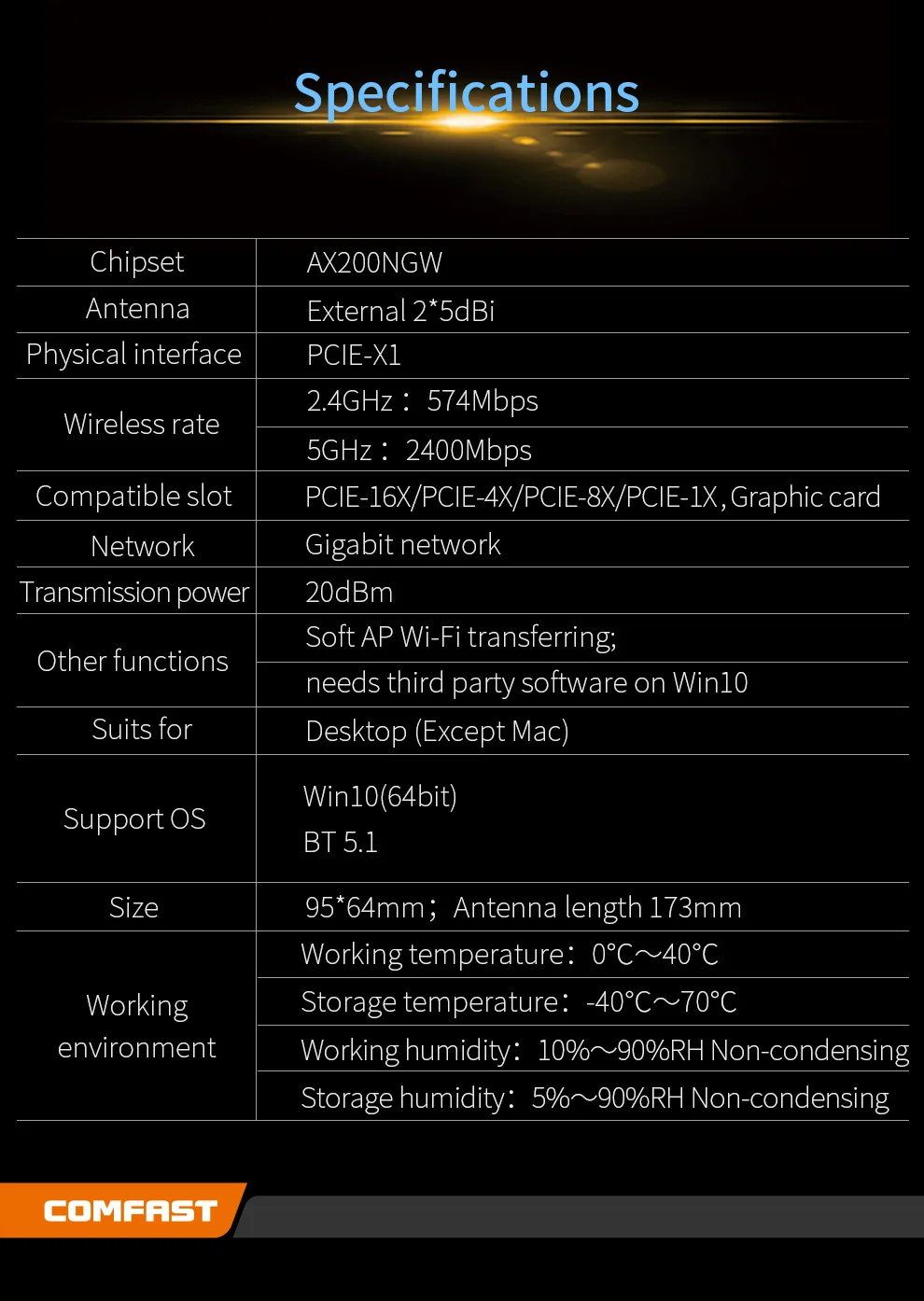 2. Модель: CF-AX200 Pro PCI-E PC wifi адаптер (см. Подробную информацию);