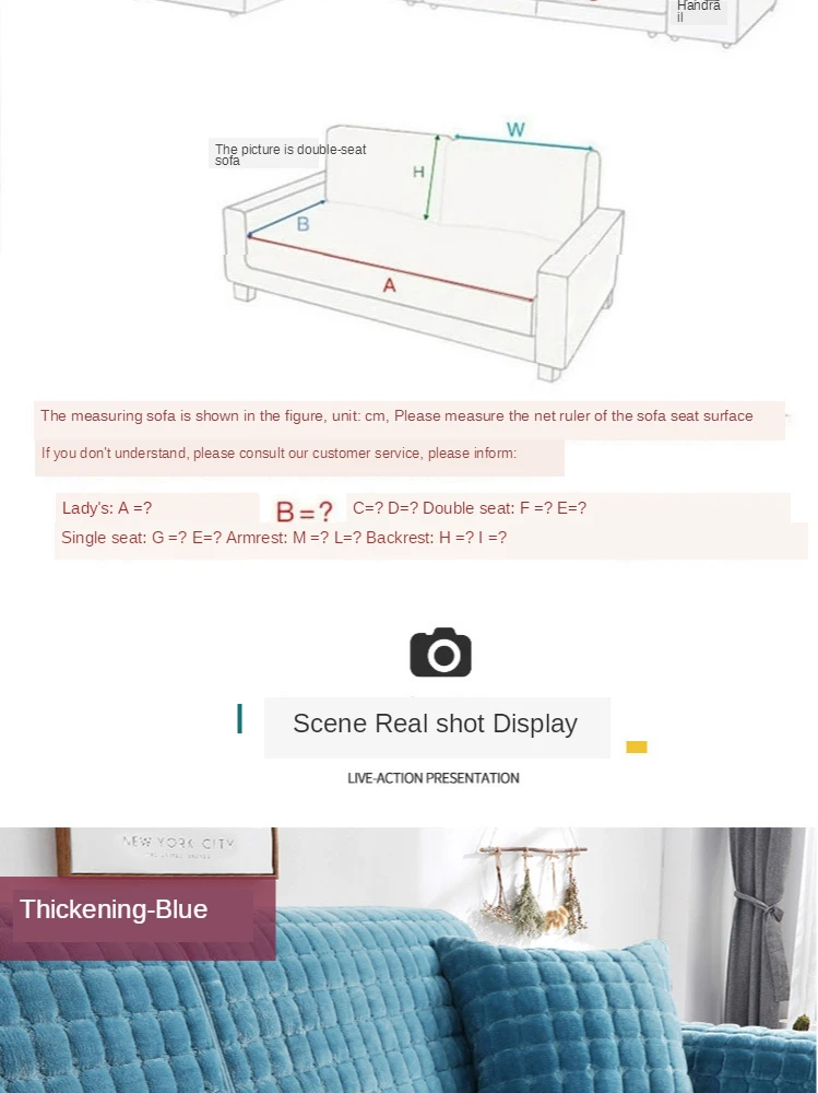 1. Подлокотник: Пожалуйста, выберите подлокотник в соответствии с размерами GxH. 2. Чехол на сиденье: Ex(F + 10 ~ 30 см) 1 шт; Bx(A + 10 ~ 30 см) 1 шт; Cx(D + 10 ~ 30 см) 1 шт. 3. Спинка: Если P<60 см, вы можете выбрать 70x70 см Если 60 см Если P>75 см, вы можете выбрать 110x110 см Примечание: * Замеры сделаны вручную, поэтому возможны отклонения на 3-5 см. * Из-за различных причин отображения цвет продукта может немного отличаться, пожалуйста, обратитесь к фактическому продукту. * Если вы не знаете, как выбрать размер, пожалуйста, отправьте нам размер в соответствии с форматом (A = см? B = см?), мы поможем вам порекомендовать, спасибо!