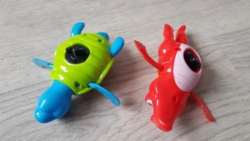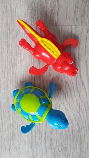 очень классные игрушки) ребенок доволен. плавают отлично) нам попала черепаха синяя с зеленым и красный крокодил)