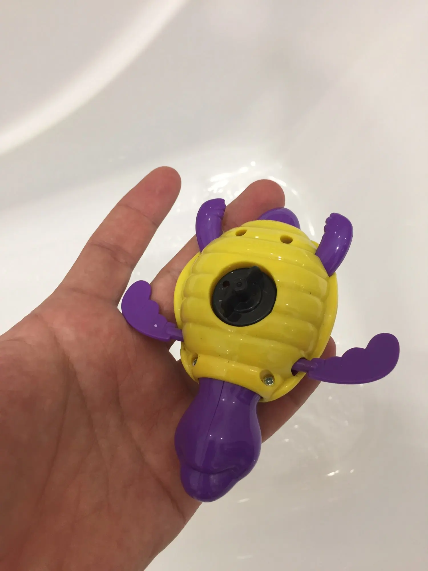 Черепаха не плавает в воде. По всей видимости, механизм сломан. Девушка была разочарована