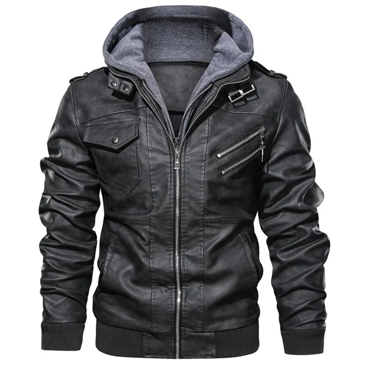 Мужская Осенняя кожаная куртка с капюшоном, мотоциклетная куртка из...