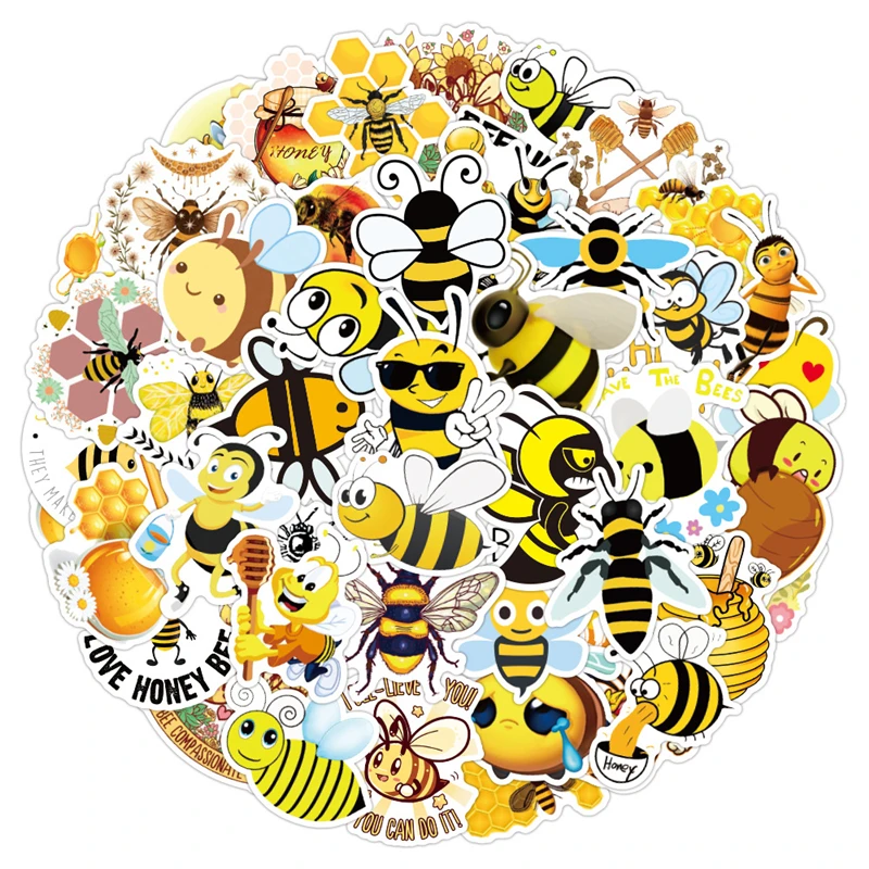 50 шт., водонепроницаемые наклейки в виде пчелы
