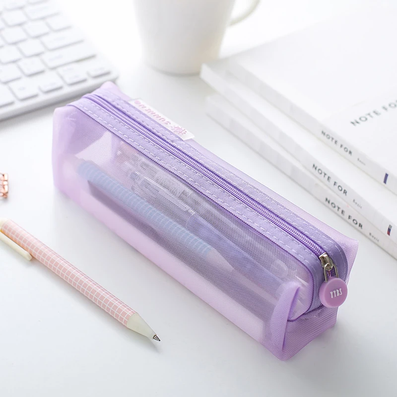 Пеналы из сетчатой ткани для школы, милые однотонные прозрачные Пен...