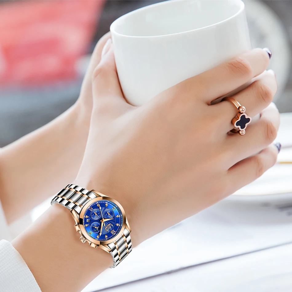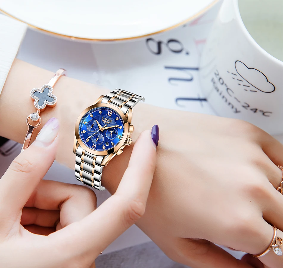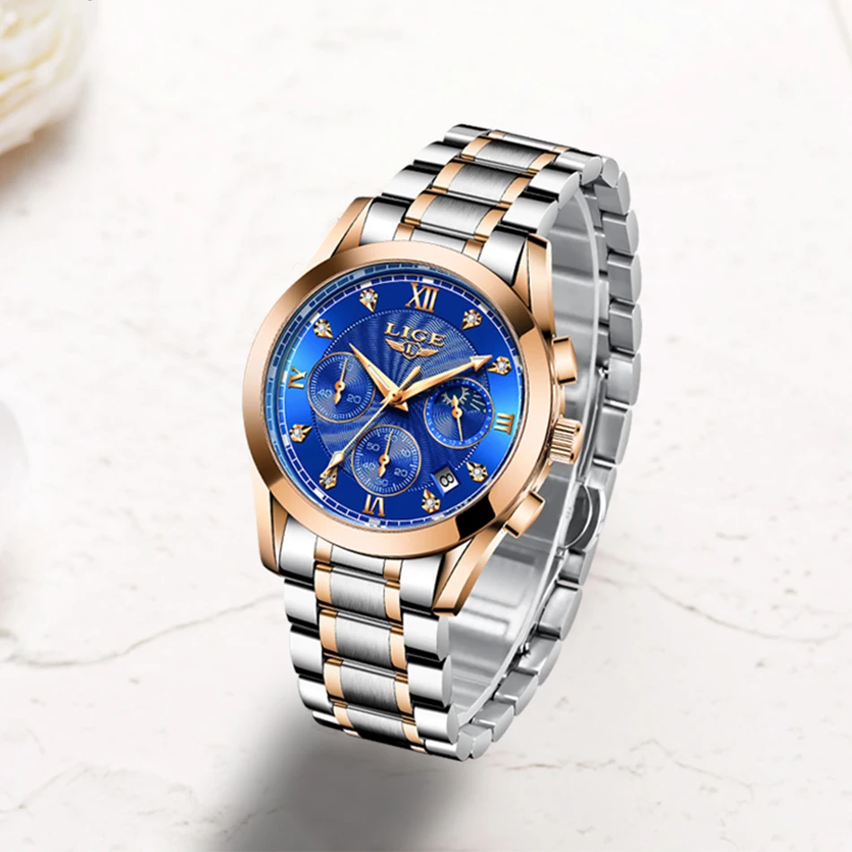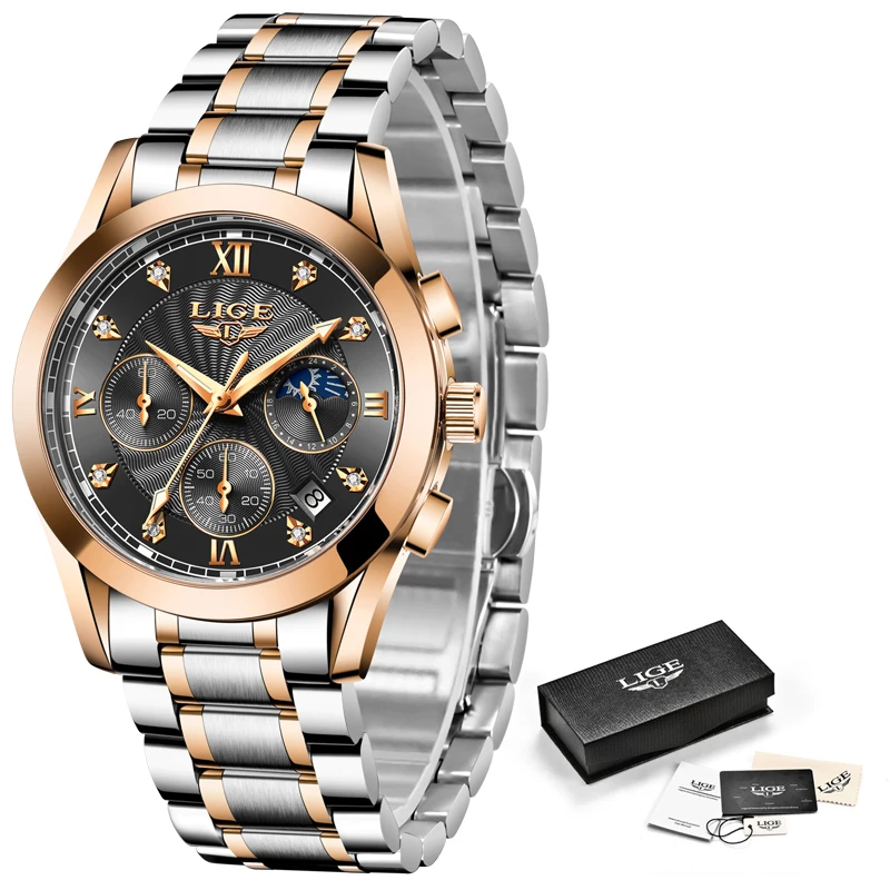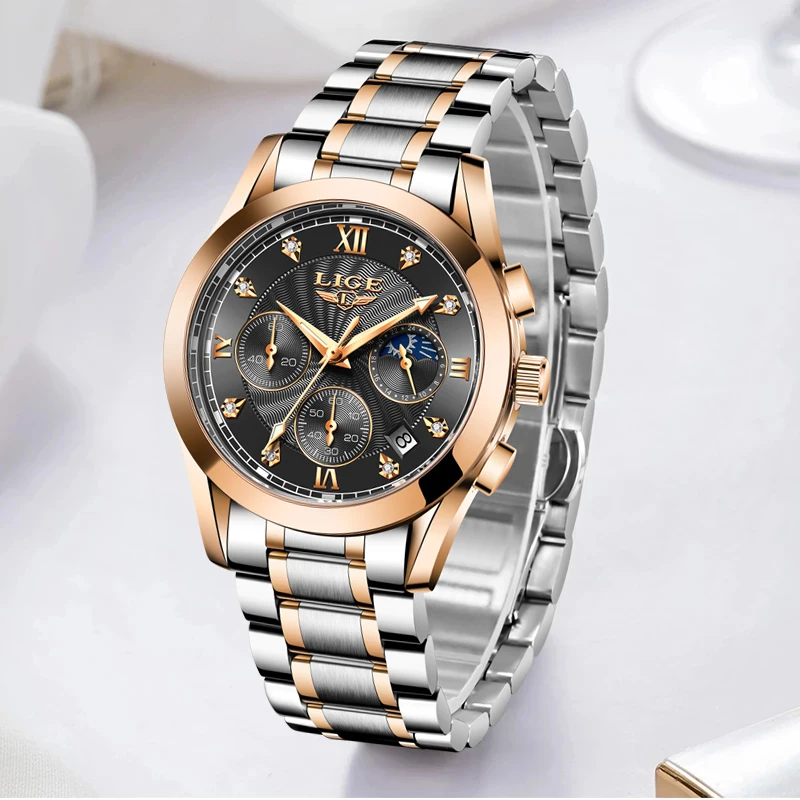 Часы наручные LIGE женские водонепроницаемые, черные креативные стальные, с браслетом, 2021