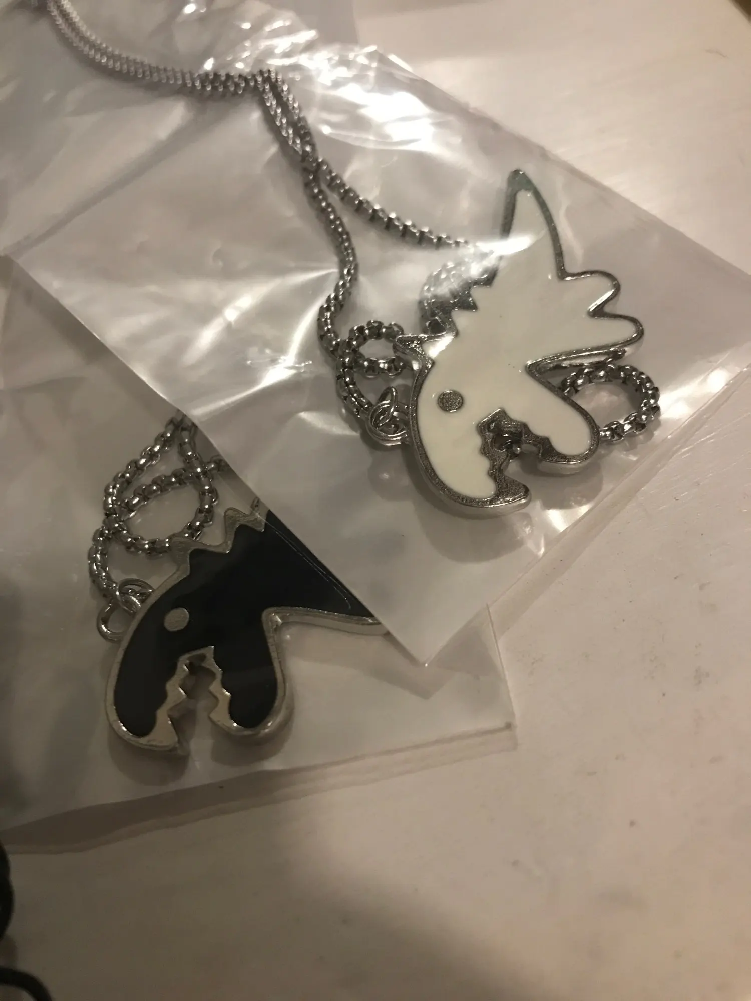 Подвески больше, и цепочки длиннее, чем на фото, но они выглядят хорошо, и я им доволен.