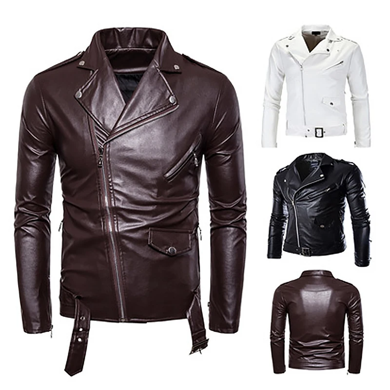 Мужская мотоциклетная куртка на молнии, черная или белая облегающая...