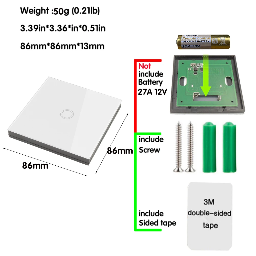 Беспроводной сенсорный выключатель света для умного дома rf 86, настенный сенсорный выключатель ВКЛВЫКЛ, переменный ток 110 В 220 В 10 А, приемник светильник щения