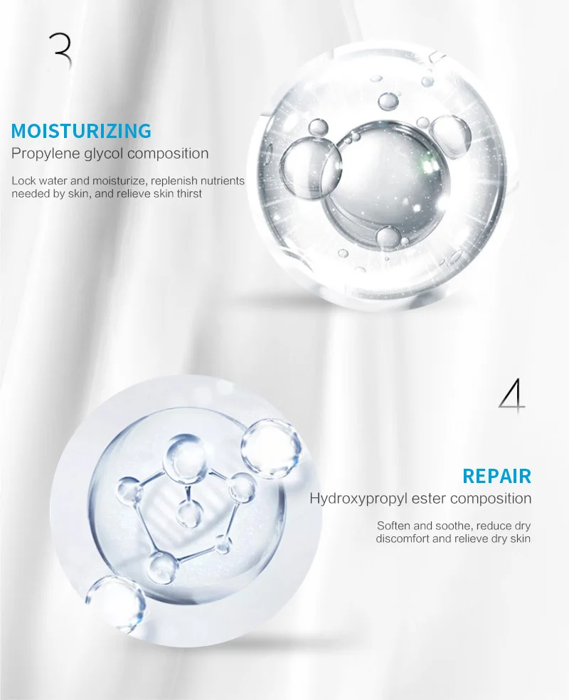 Увлажнение: быстро увлажняет и удерживает влагу, добавьте защитную пленку к коже.