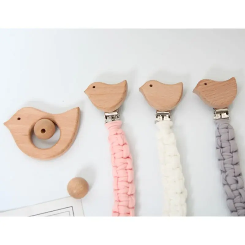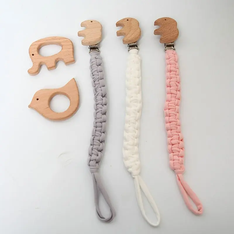 Цепочка-держатель для соски-пустышки для прорезывания зубов Прорезыватель из буковой древесины