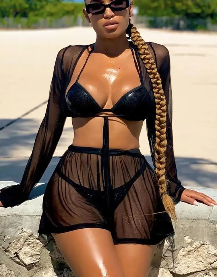 Комплект женского купальника из 2 предметов, включая тюлевый купальник с открытым животом и Прозрачные шорты-хороший выбор на платье для пляжа и отпуска год