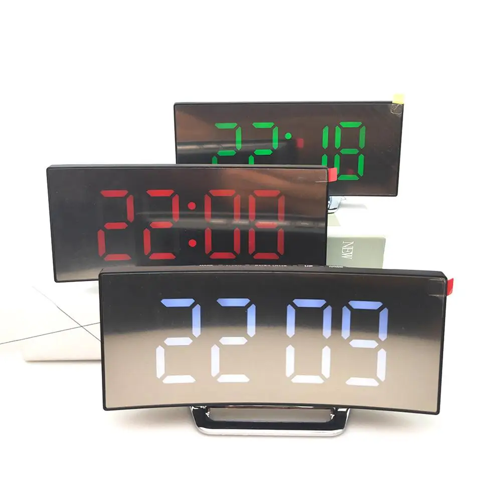 Цифровые часы-будильник изогнутый затемнения светодиодный Sn электронные цифровые настольные часы для детей Спальня большое количество настольные часы