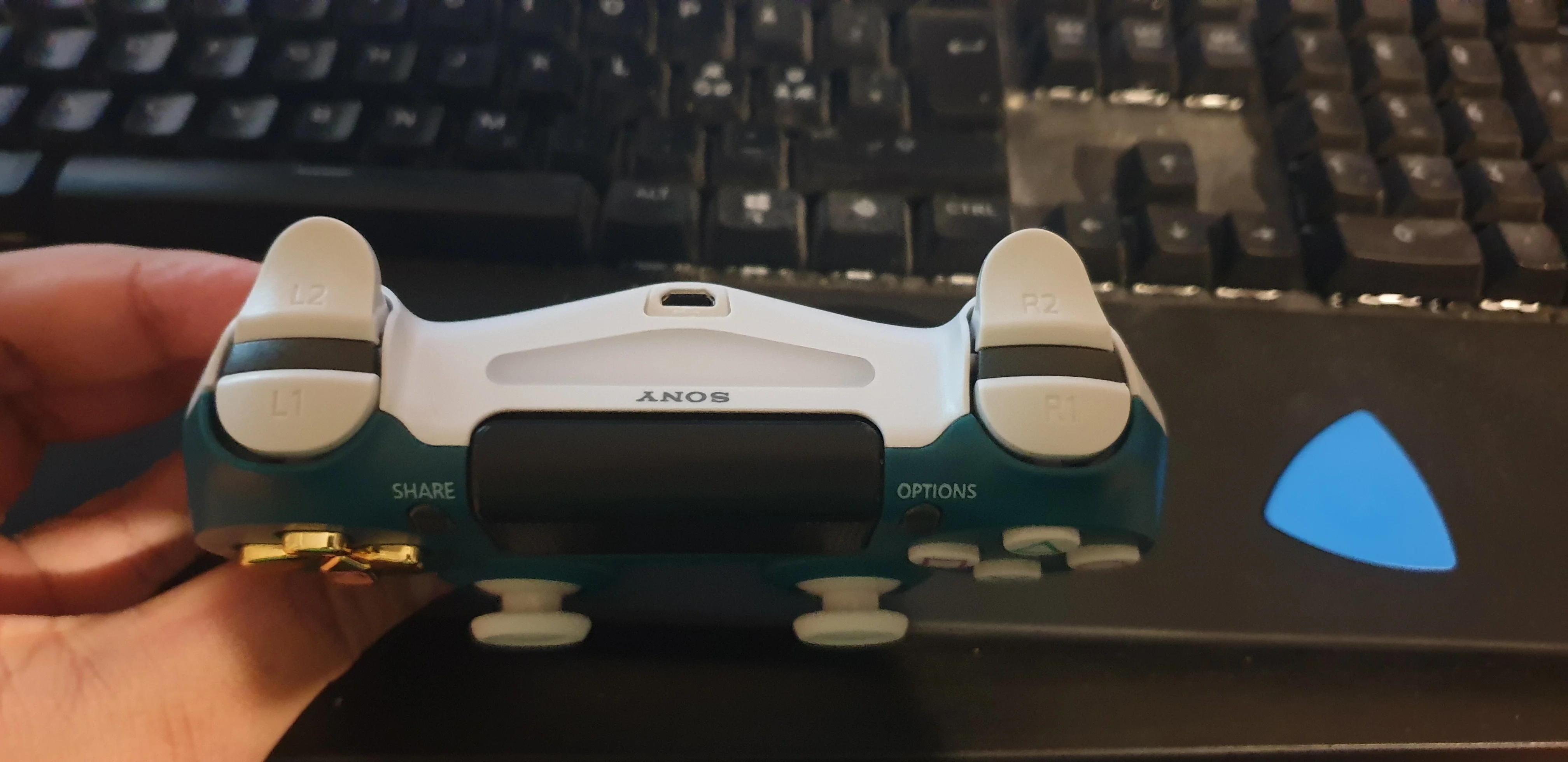Кнопки L2 и R2 чувствуют себя губчатыми, пришлось держать мои старые кнопки, которые имеют другой цвет