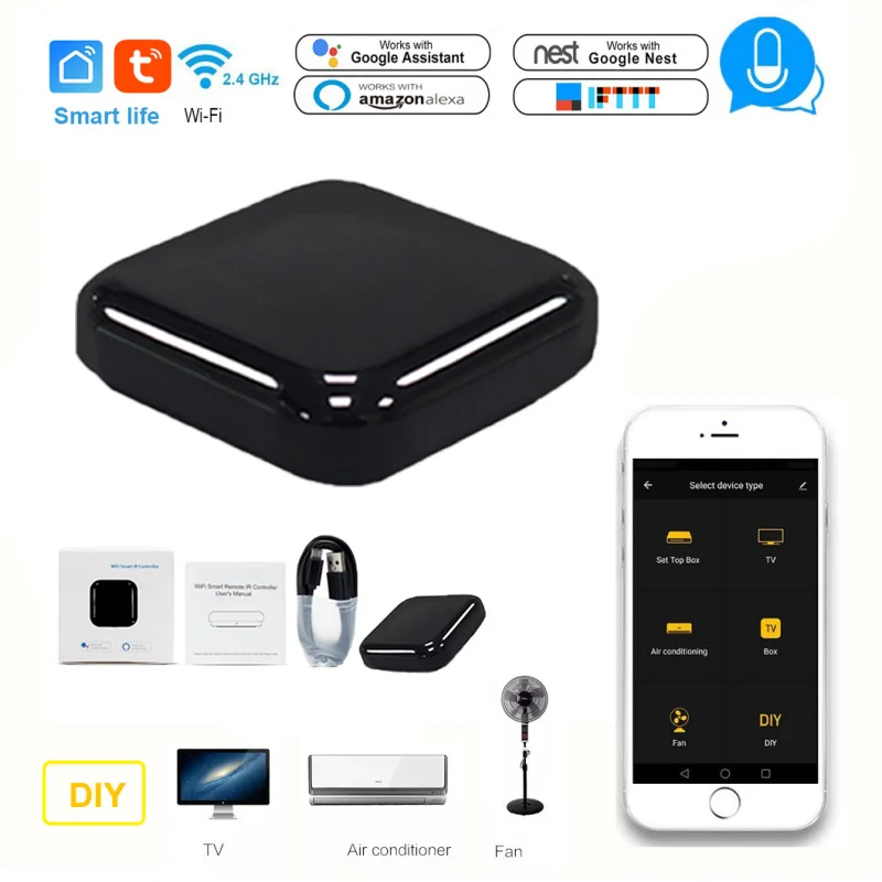 ИК-устройство, полная интеграция с RM4C mini, вы можете управлять своей бытовой техникой на свой мобильный телефон и поддерживать различные приборы, такие как телевизоры, приставки и кондиционеры воздуха