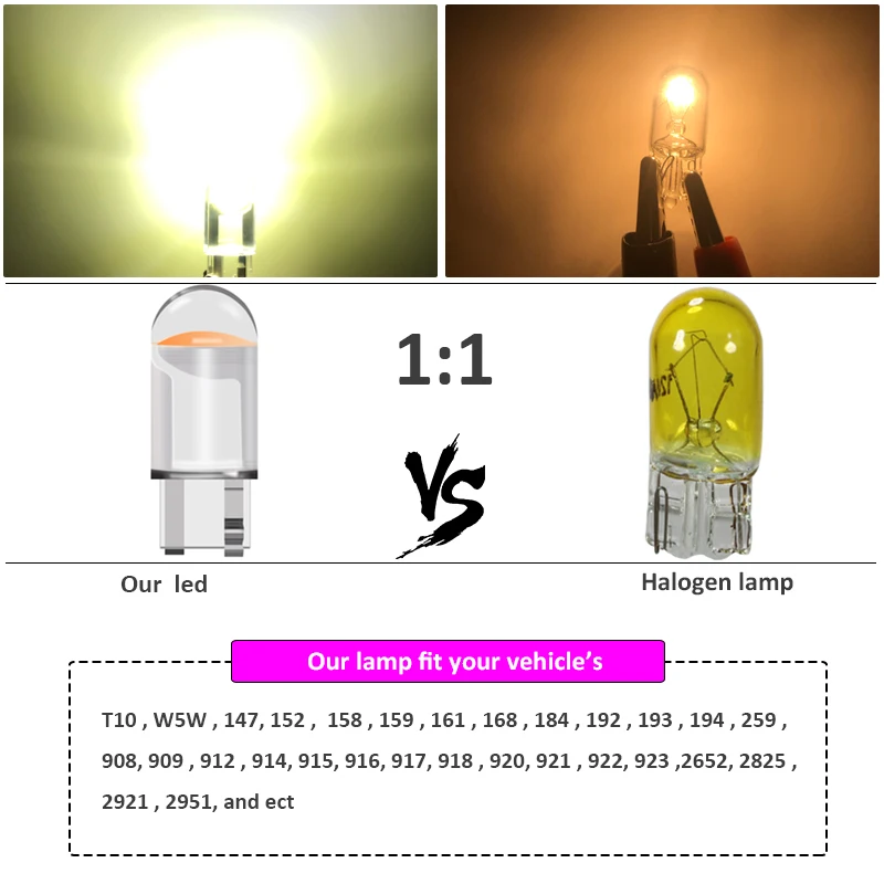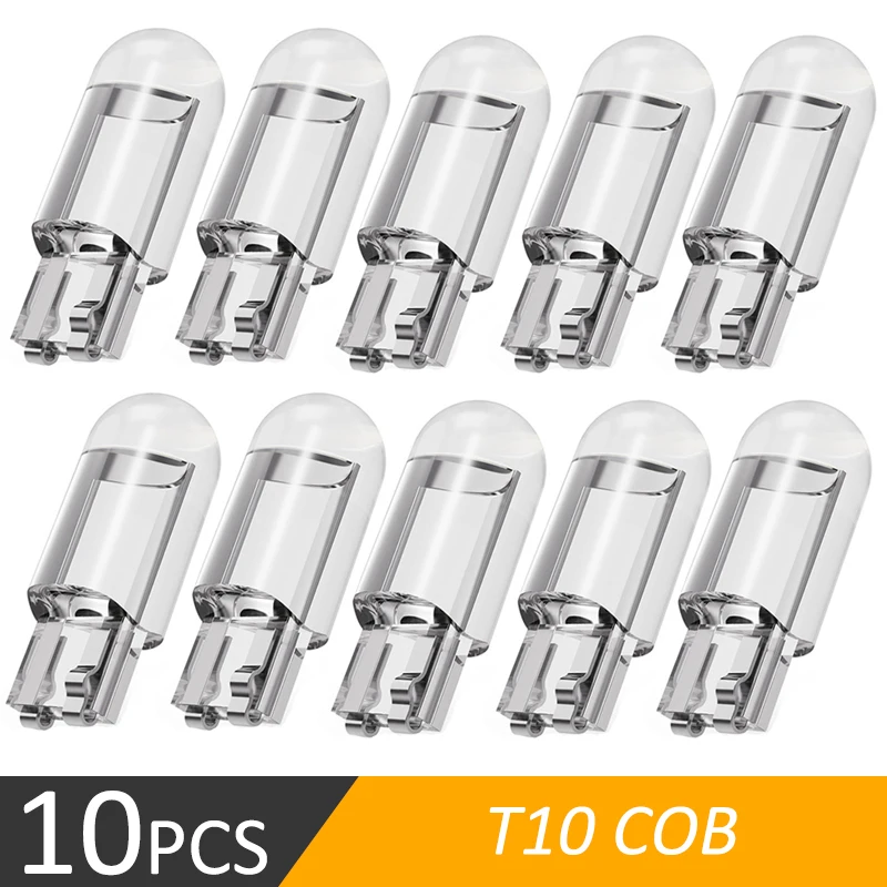 10 шт. W5W 194 T10 стеклянный корпус Cob светодиодный автомобильная лампа желтый белый зеленый синий красный Клин номерной знак лампа купольный светильник