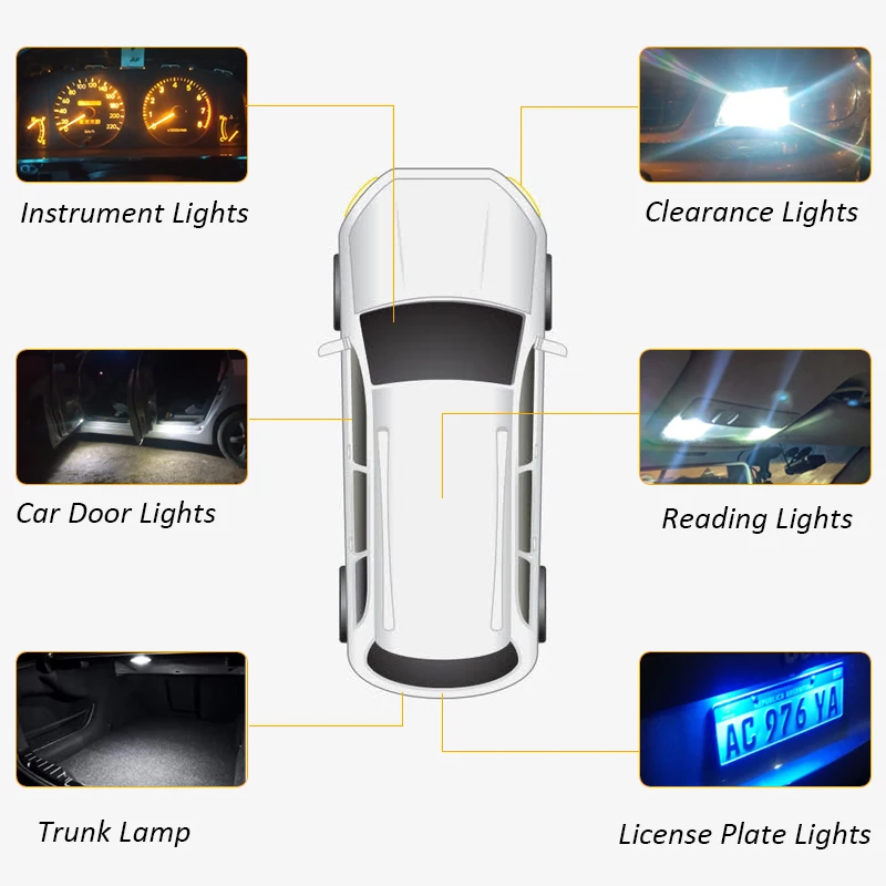 хорошие светодиодные лампочки, яркие. светят в основном только вперёд мало по бокам. рекомендую. подходят во все все гнезда для них. просто попадаются лампочки, которые выскакивают из гнезд, так как у них маленькие ножки, а в этих ножке длинные нормальные.