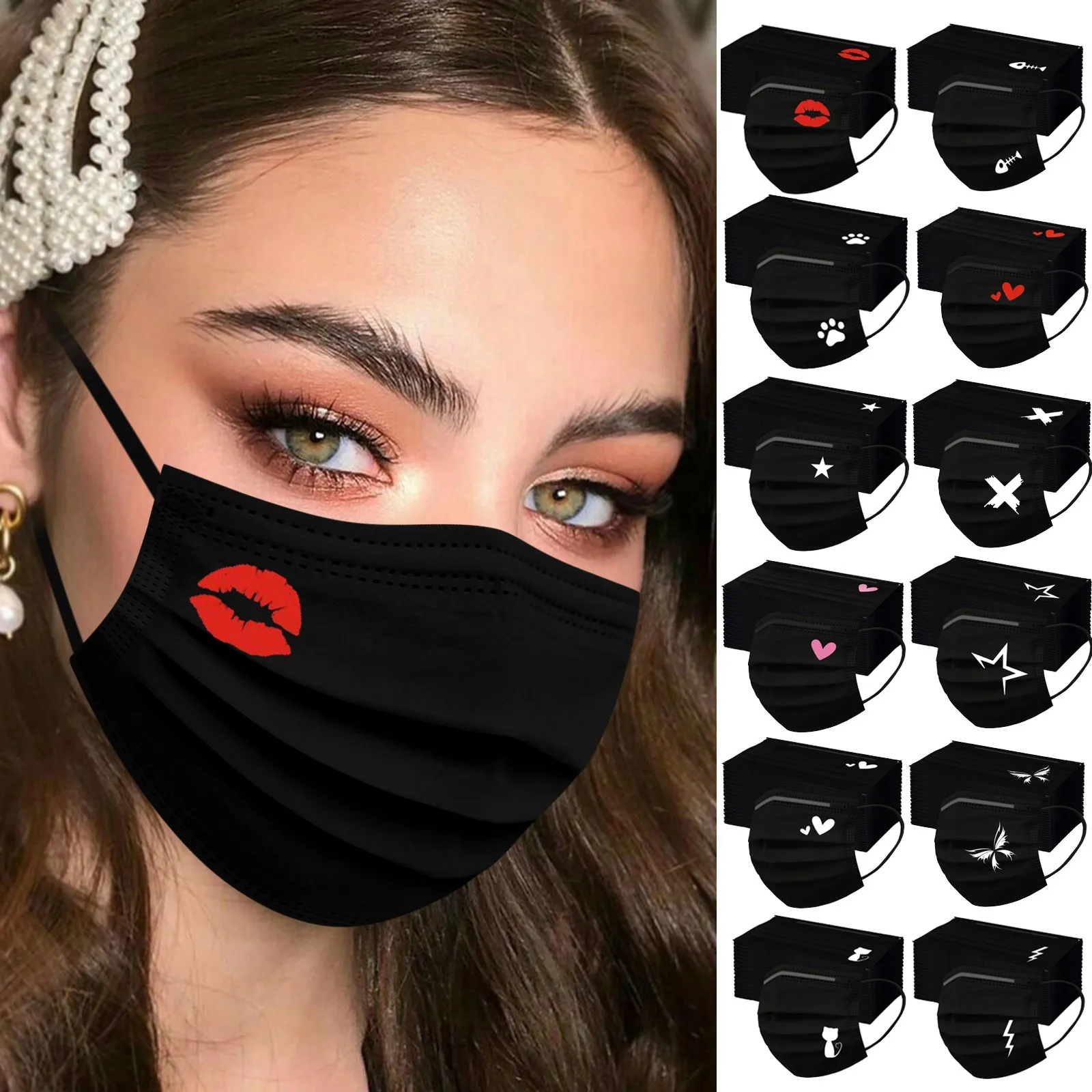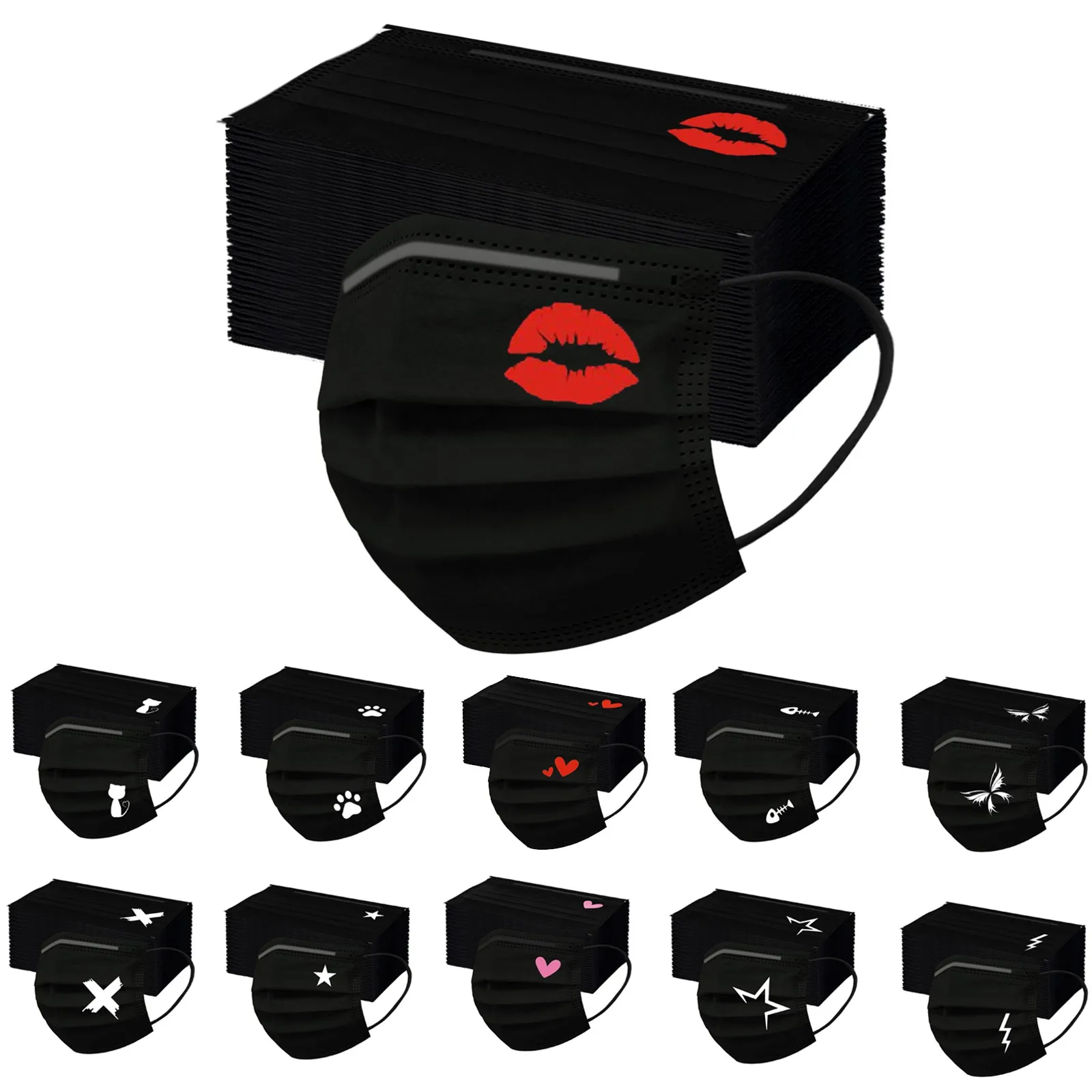 Маска для лица из собачьей лапы, черная одноразовая маска с принтом, маска с петлями для ушей, Пылезащитная маска унисекс, дышащая маска для рта # M2