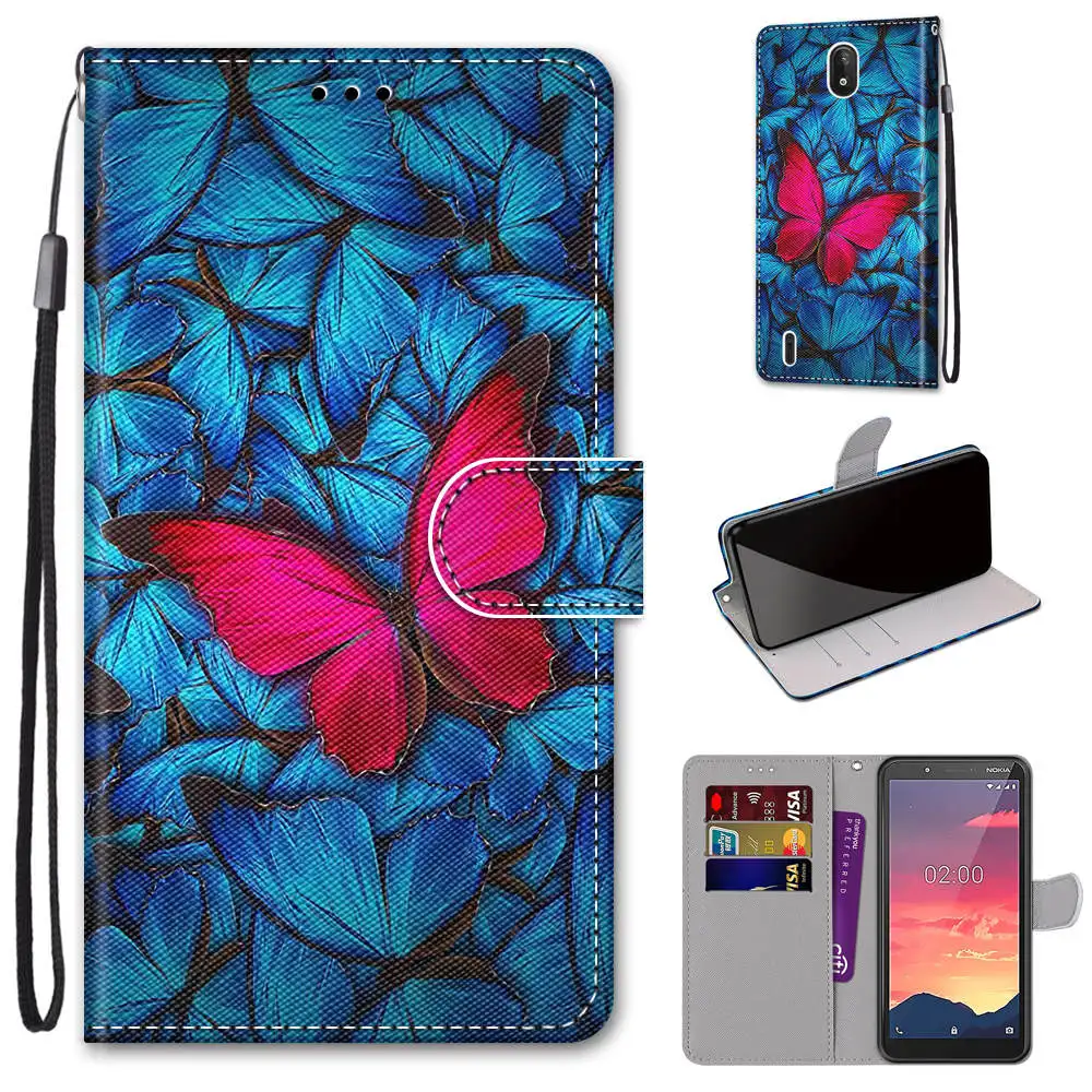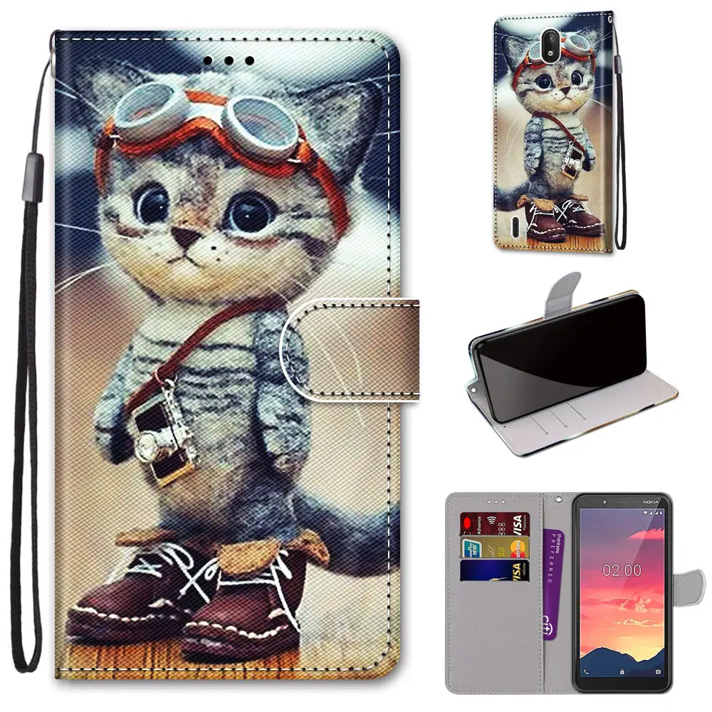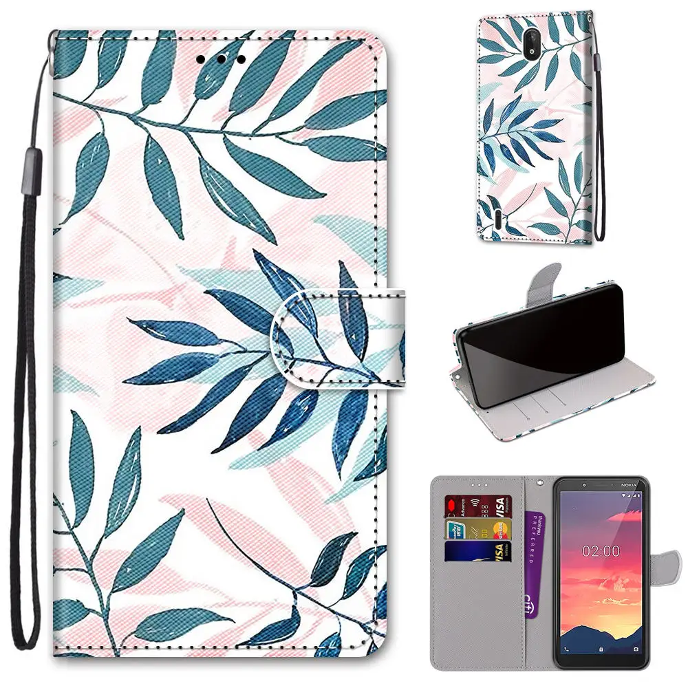 Чехол-книжка для Nokia 2,3, 3, 5, 5,3, C2, кожаный, с принтом
