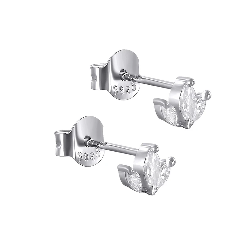 【Тип товара 】:Маленькие серьги-гвоздики в виде клевера с белыми камнями