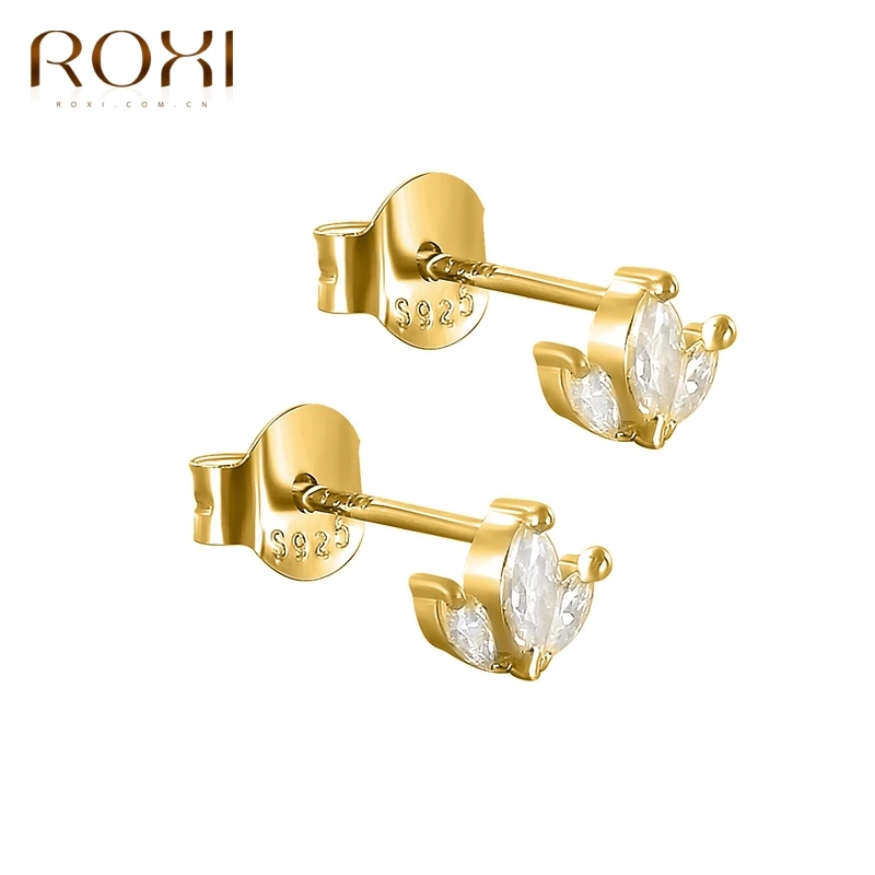ROXI роскошные белые камни Клевер маленькие серьги гвоздики для женщин серьги ювелирные изделия Необычные серьги из стерлингового серебра 925 пробы Pendientes