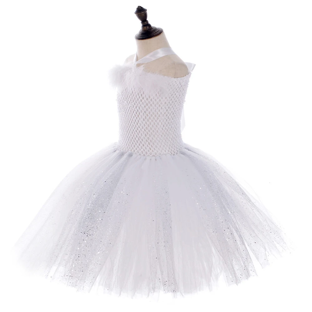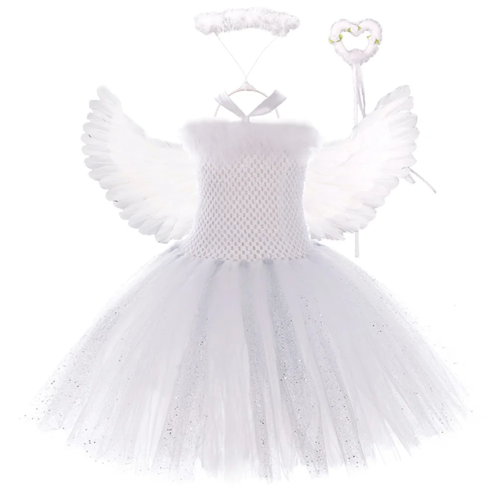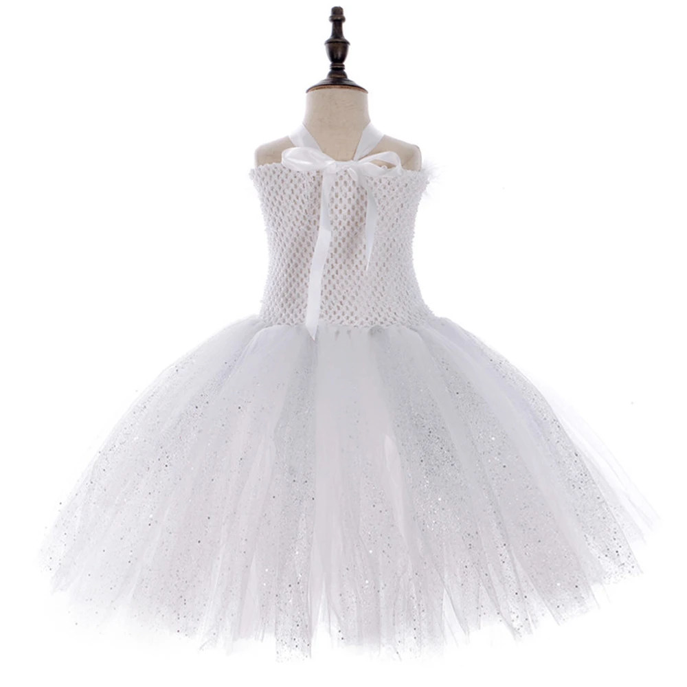 Платье-пачка для девочек с серебряными блестками и белыми крыльями ангела, рождественские и новогодние костюмы принцессы, сказочные платья для девочек на день рождения